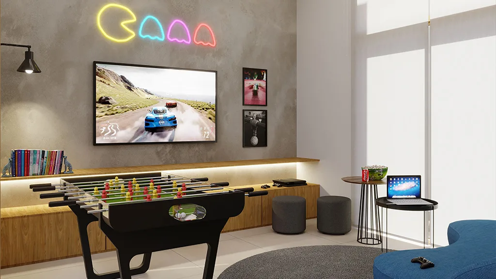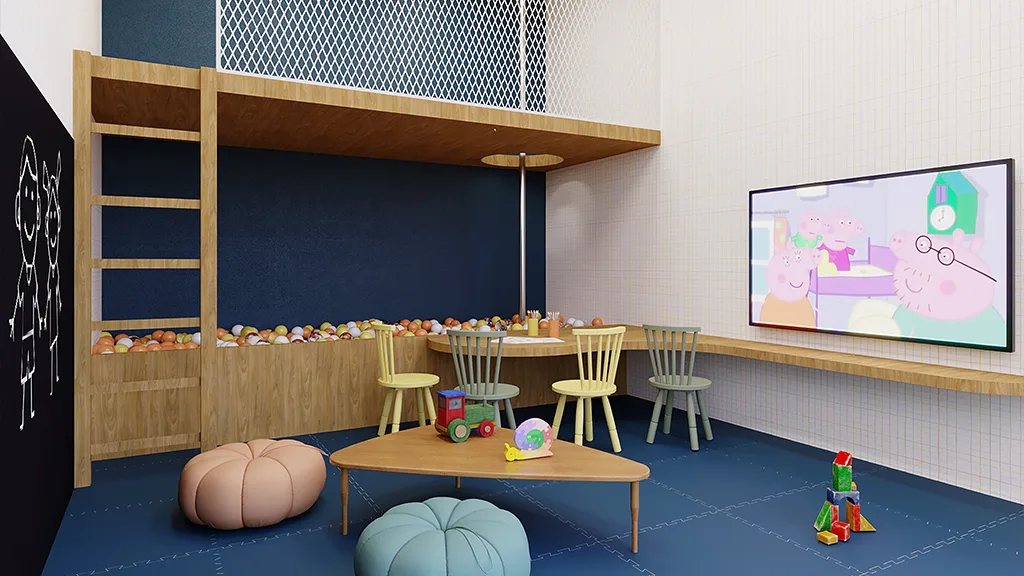 O condomínio inclui diversas opções de lazer, como piscina adulto e infantil, academia, churrasqueira, espaço gourmet, espaço kids, salão de festas, espaço teen, redário, horta, playground, espaço coworking, sala de reunião, podcast, espaço zen, sauna a vapor, baby care e pet care. A segurança do condomínio é garantida por monitoramento por câmeras e fechadura biométrica, além de outras medidas avançadas.