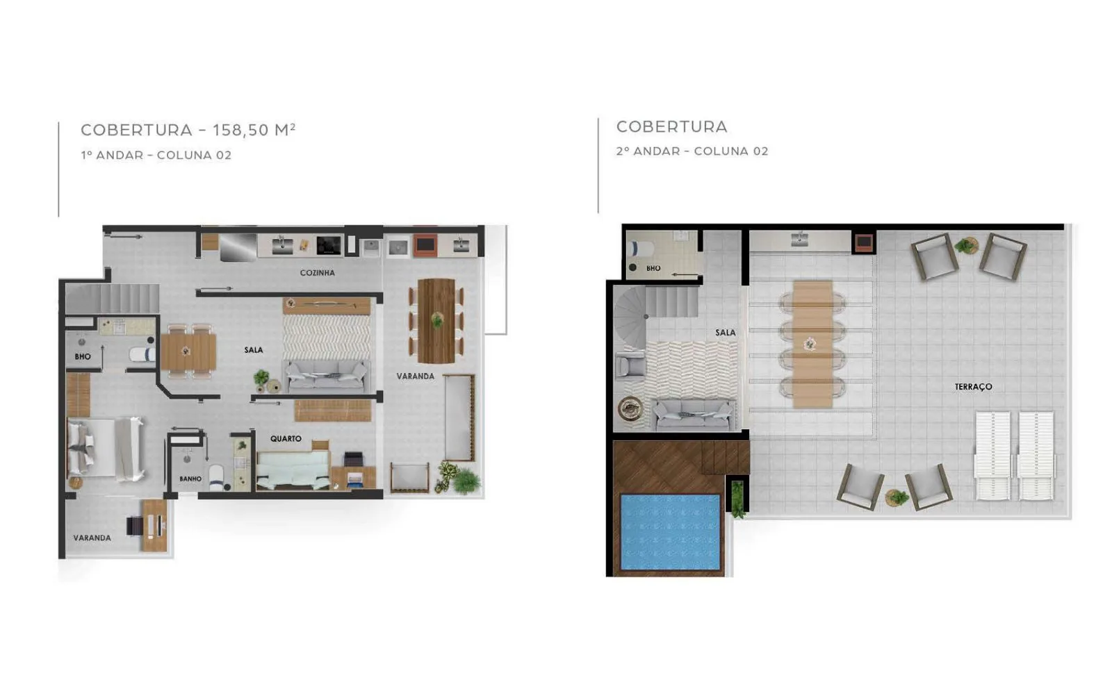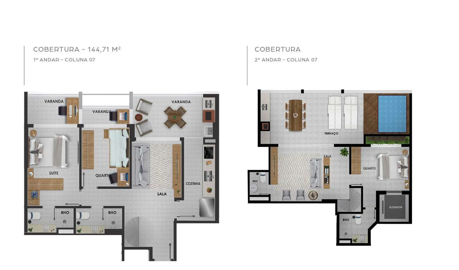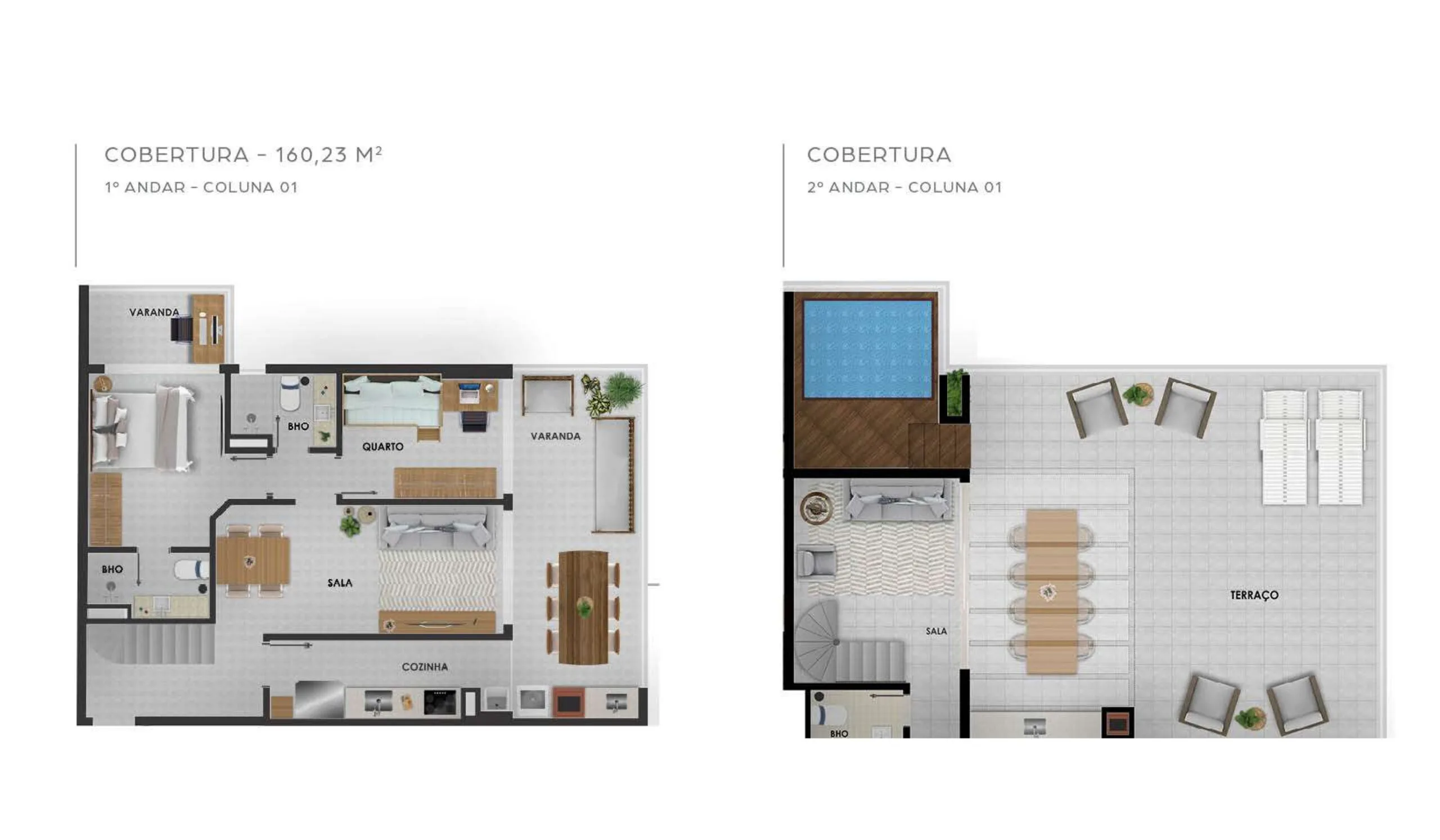 | Cobertura duplex | Consulte valores | 144 m² | 2 | 1 | 2 |