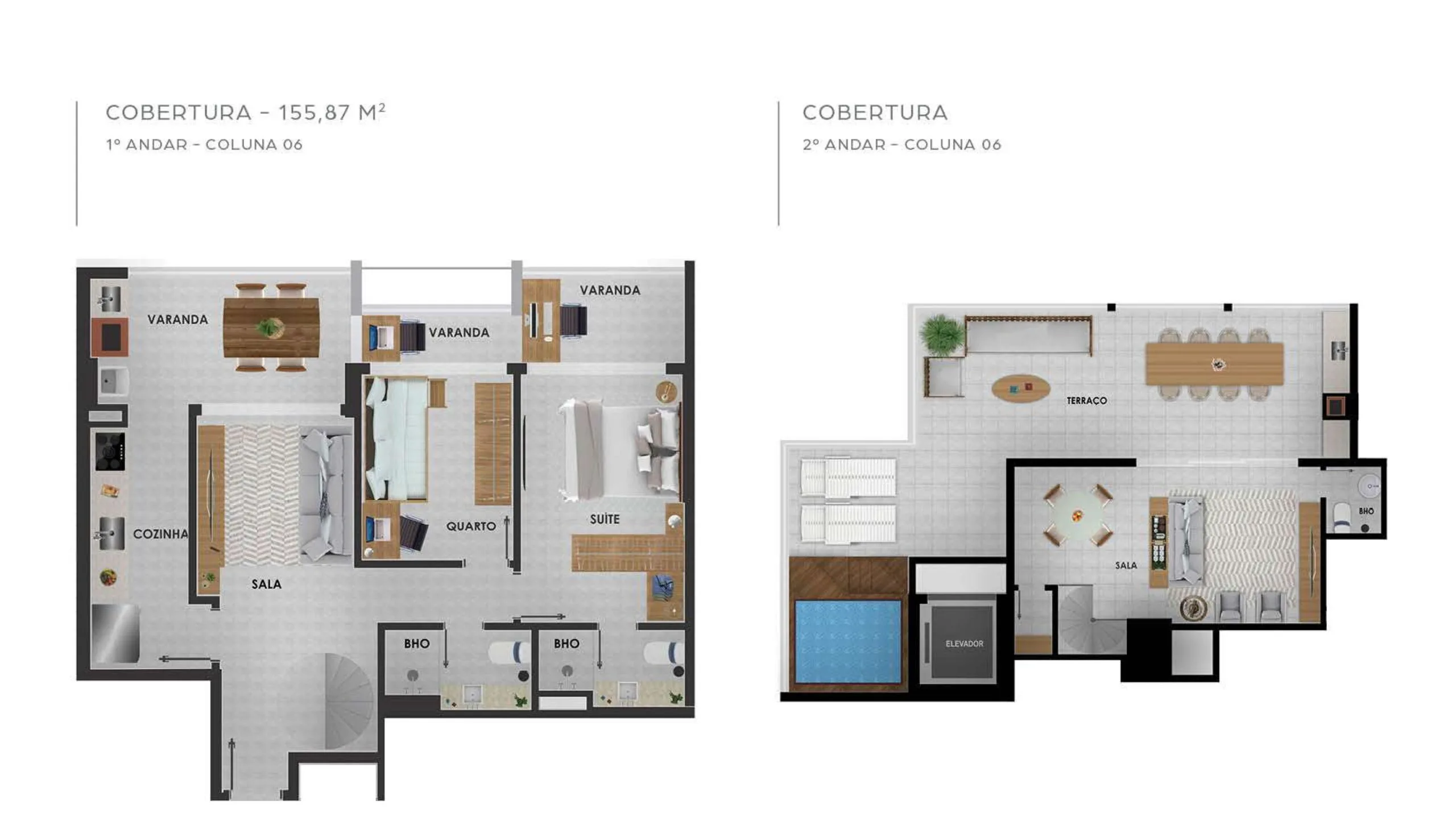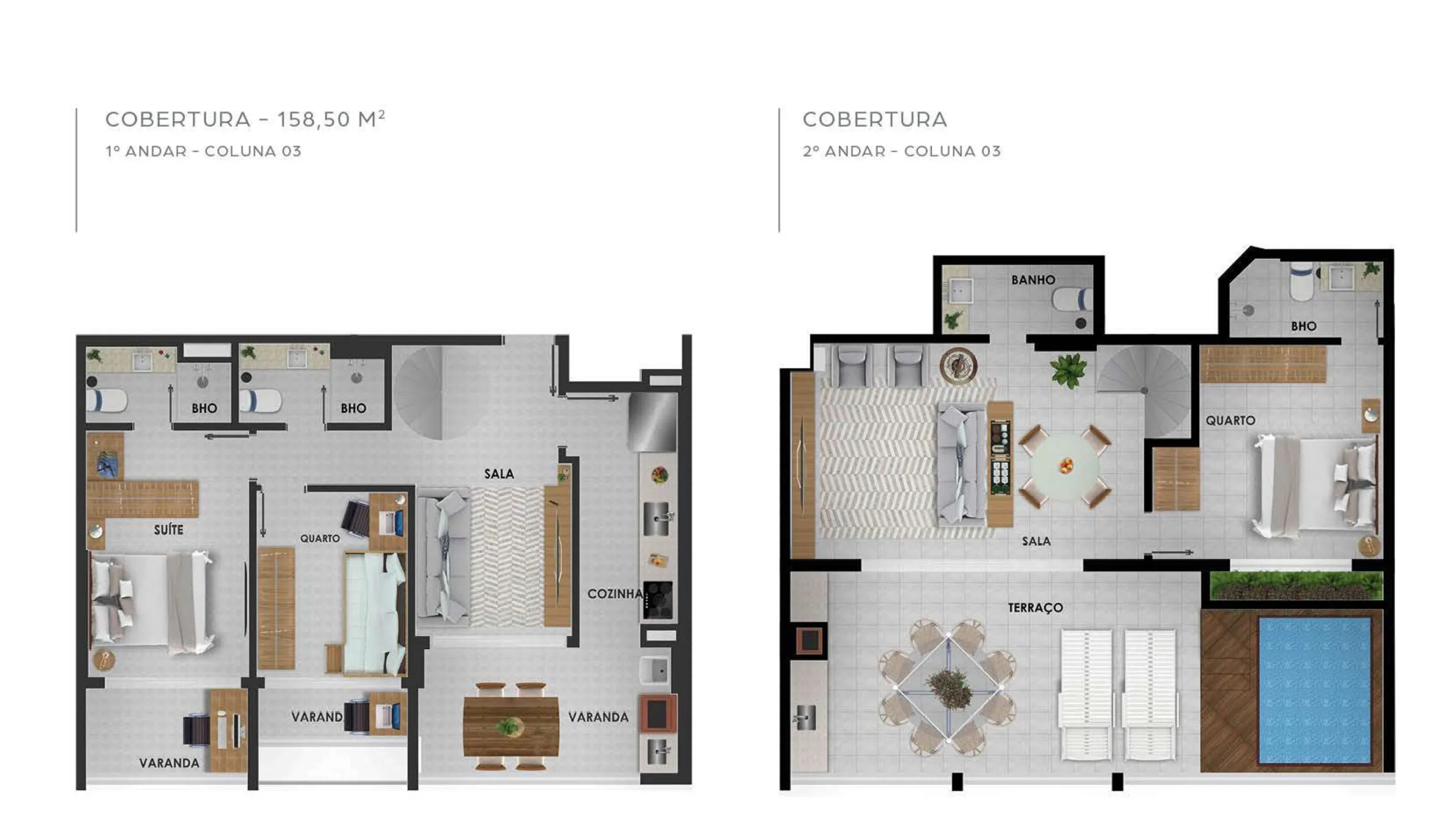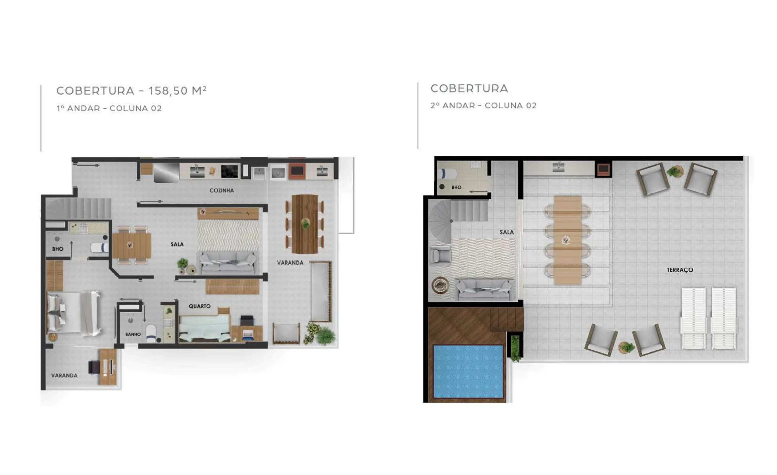 | Cobertura duplex | Consulte valores | 144 m² | 2 | 1 | 2 |
