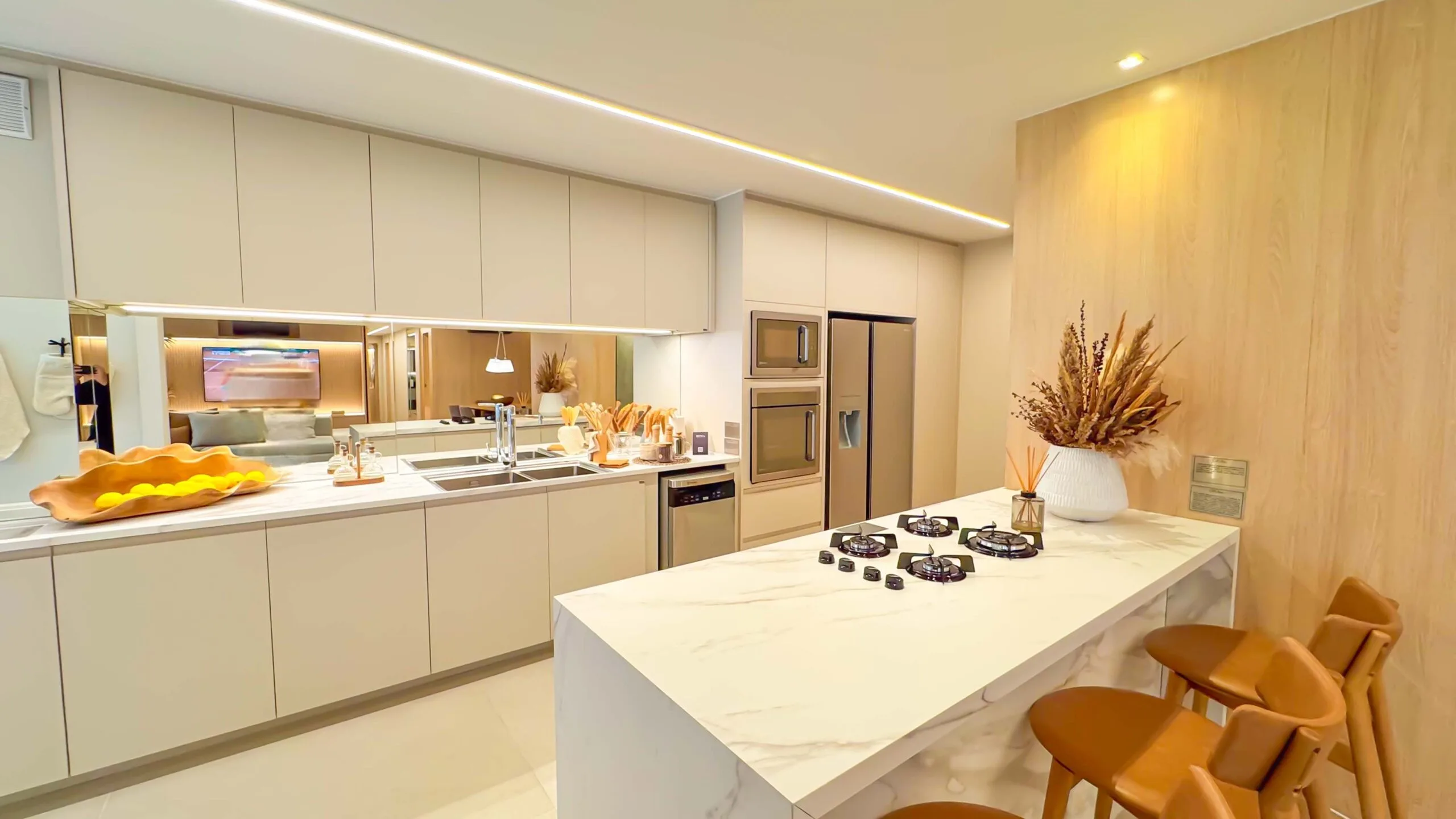 As coberturas com opções de 4 suítes com de 280 m², 301 m² e 365 m², os imóveis destacam-se pelo conforto e pela ótima recepção de luz e ventilação naturais, além das 3 vagas de garagem disponíveis por unidade. O layout interno é cuidadosamente projetado, garantindo o uso otimizado de cada metro quadrado. A construtora Tegra oferece a possibilidade de personalização das plantas, permitindo que os futuros moradores adaptem o imóvel conforme suas preferências.