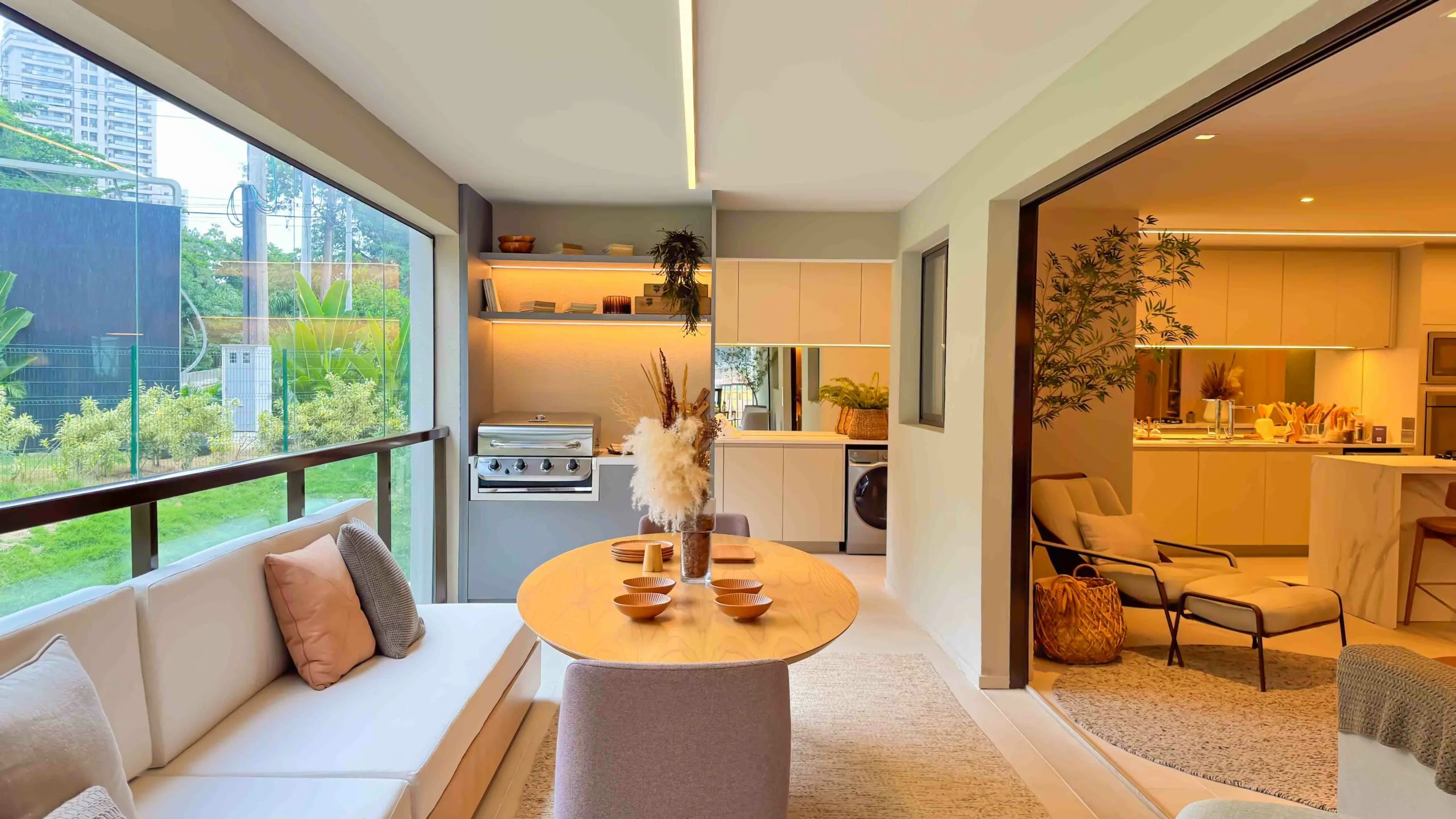 Os apartamentos garden do Gaea Home Resort da Tegra na Barra oferecem uma experiência única de moradia, com 32 opções disponíveis. Com metragens generosas das opções de 3 suítes entre 186 m² e 272 m² e as de 4 suítes apresentando entre 275 m² e 315 m². Destacam-se as 3 vagas de garagem para cada unidade. O espaço externo privativo, característico dos gardens, permite aos residentes personalizarem o ambiente conforme suas preferências, elevando a qualidade de vida.