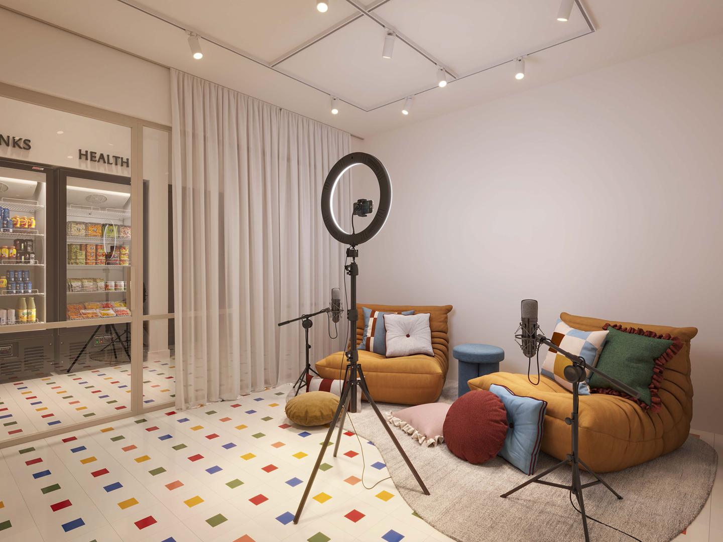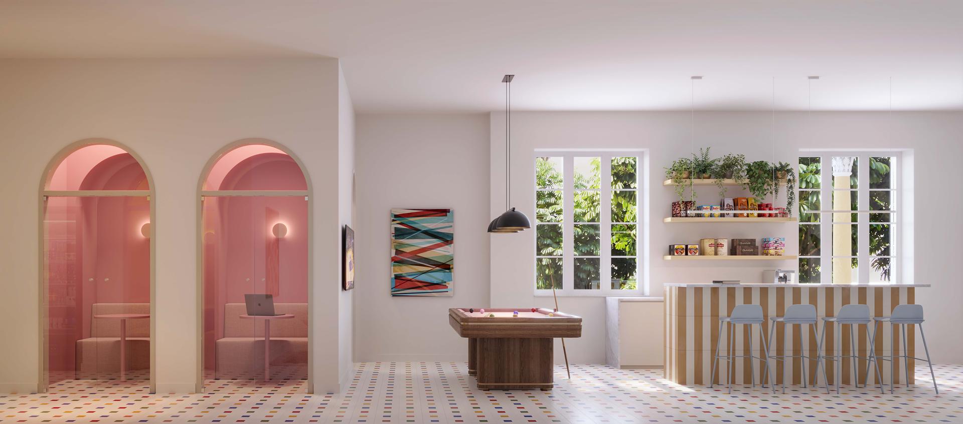 - Casarão: hub criativo, salas de reunião, sinuca, cabines de videoconferência, sala de podcast, minimercado e vending machines.