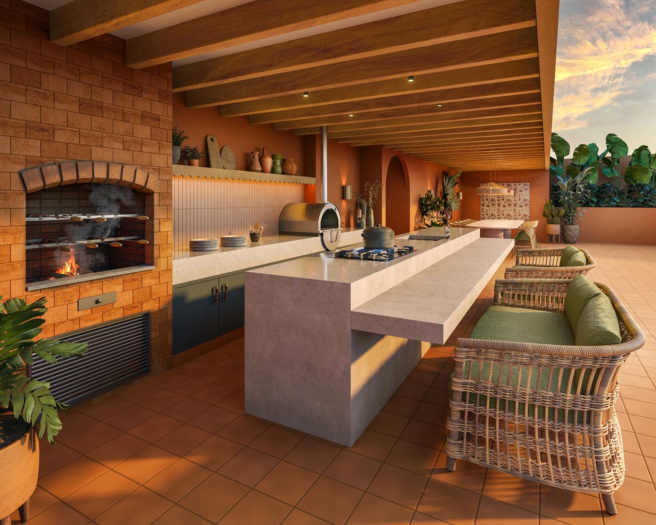 - Lazer no rooftop: piscina com deck, piscina com raia, academia, espaço crossfit, espaço yoga, espaço recovery, sauna, espaço gourmet, churrasqueira e lounge descoberto.