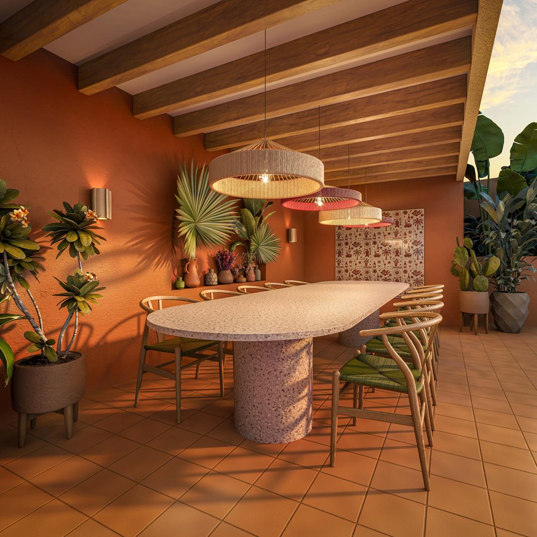 O condomínio conta com um rooftop completo, casarão multiuso e um bosque integrado à natureza, oferecendo lazer e comodidade em todos os espaços.