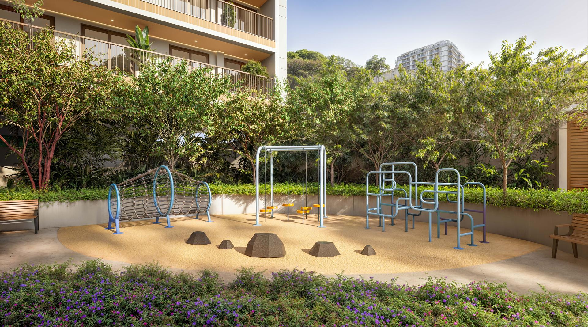 - Bosque: playground, áreas de repouso e trilha.