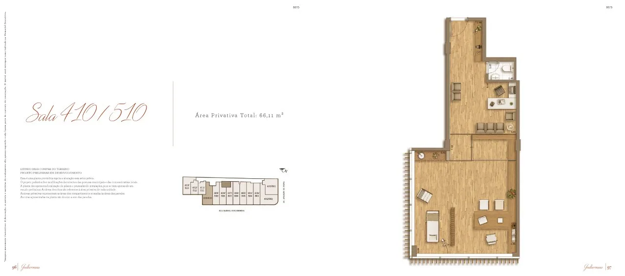 O empreendimento Guilhermina da construtora Mozak é composto por um bloco comercial com 46 salas comerciais com espaço interno de 35 m² a 166 m² e 10 lojas no térreo com metragens de 40 m² a 1.628 m². O projeto conta com um amplo estacionamento que assegura 1 vaga de garagem para cada unidade e faz uso de um sistema moderno de segurança predial.