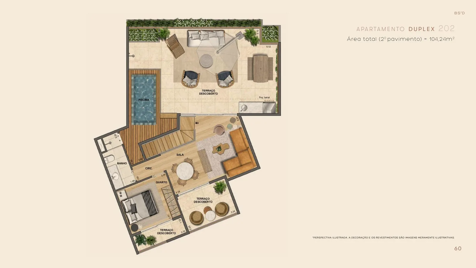 As coberturas duplex do Jardins têm metragem entre 195 m² e 260 m², 2 vagas na garagem e 4 a 5 quartos por unidade, incluindo suítes com closet.
