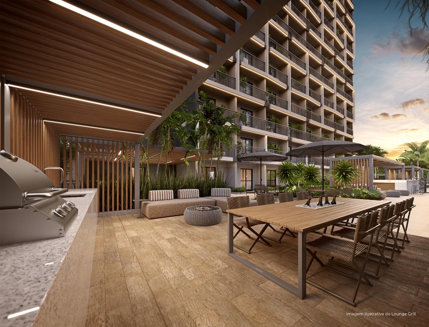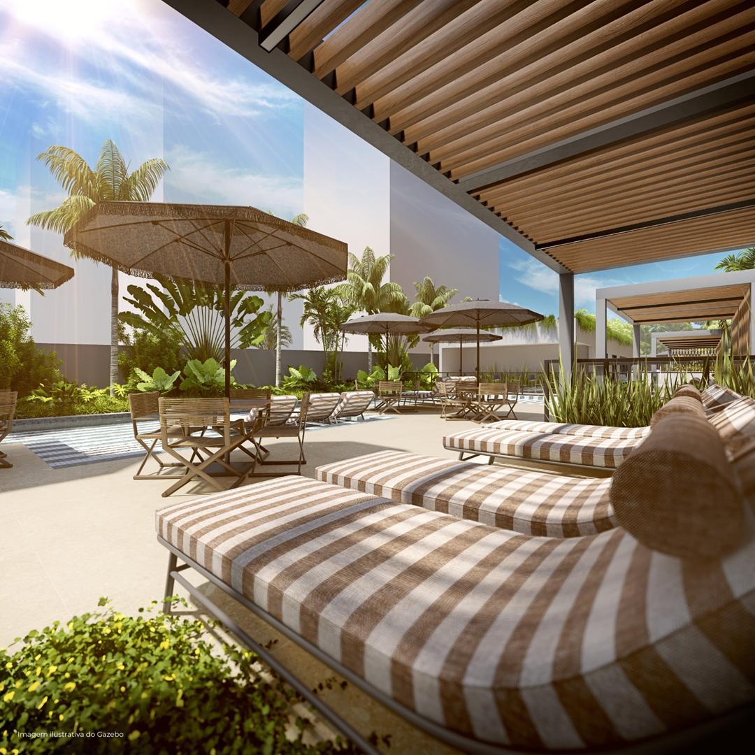 O empreendimento conta com studios e apartamentos de 2 quartos, sendo 1 suíte, com metragens que variam entre 31 m² e 50 m².