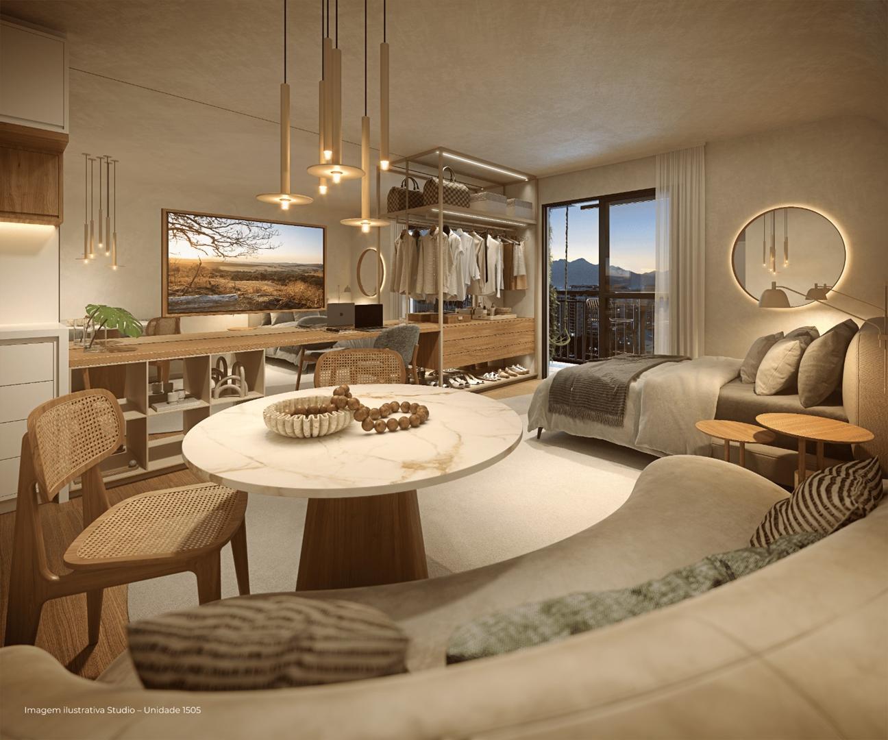 Os studios do Living Full Imagine oferecem metragens entre 31 m² e 32 m², ideais para quem busca um espaço prático e contemporâneo. Contam com infraestrutura para ar-condicionado, isolamento acústico e excelente aproveitamento dos ambientes. São perfeitos para quem deseja morar com conforto em um endereço moderno e com acesso a diversas comodidades.