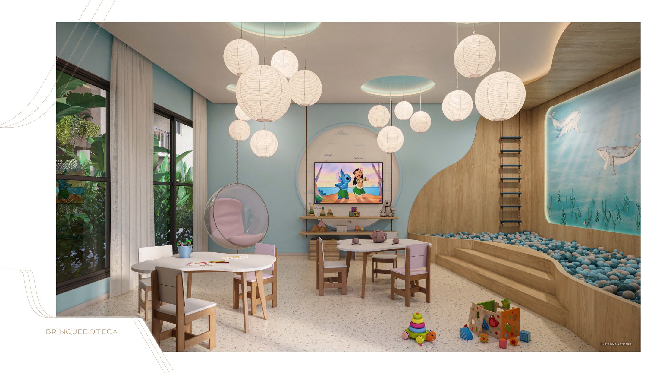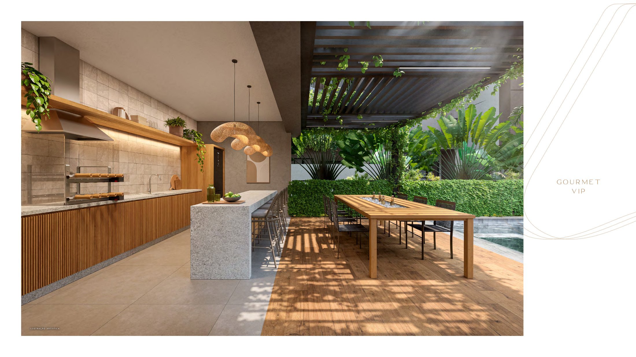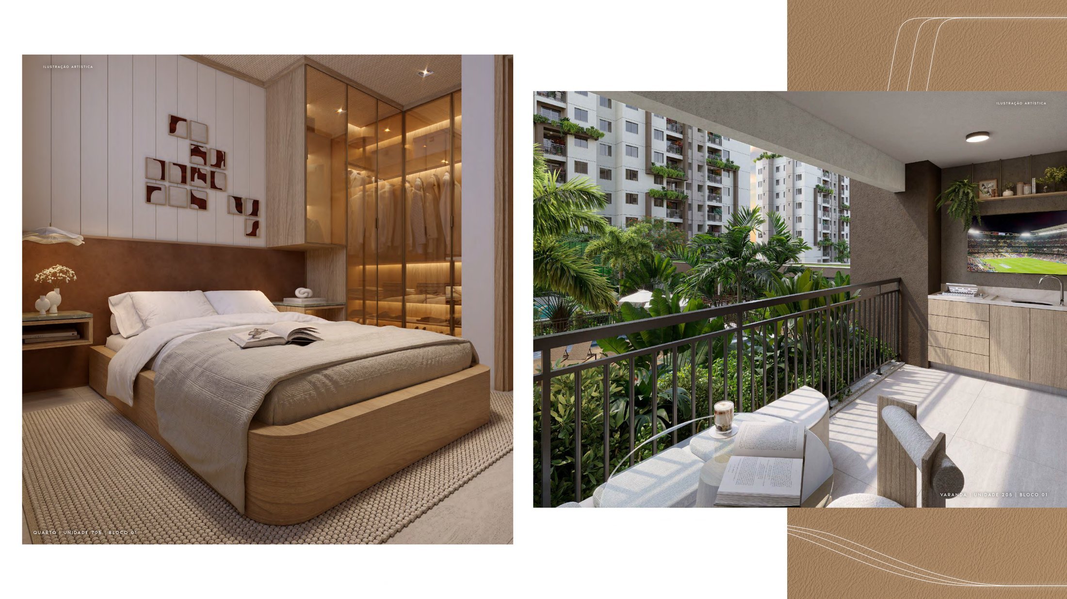 O projeto conta com apartamentos tipo e apartamentos garden, com opções de 2, 3 e 4 quartos.