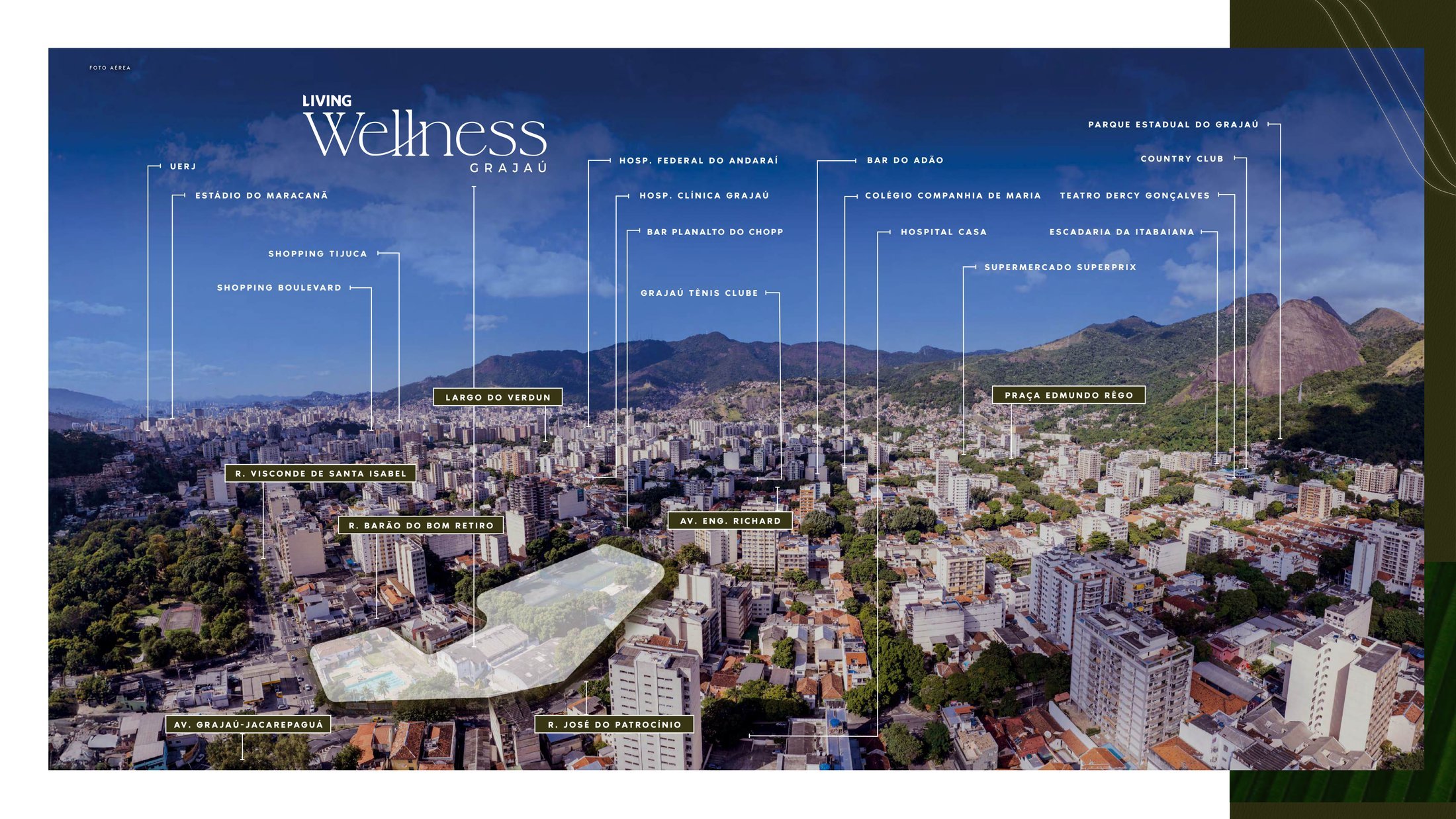 O Wellness Grajaú está localizado na Rua José do Patrocínio, no bairro do Grajaú, região residencial da Zona Norte do Rio de Janeiro com comércio local, serviços e vias de ligação para diferentes áreas da cidade.