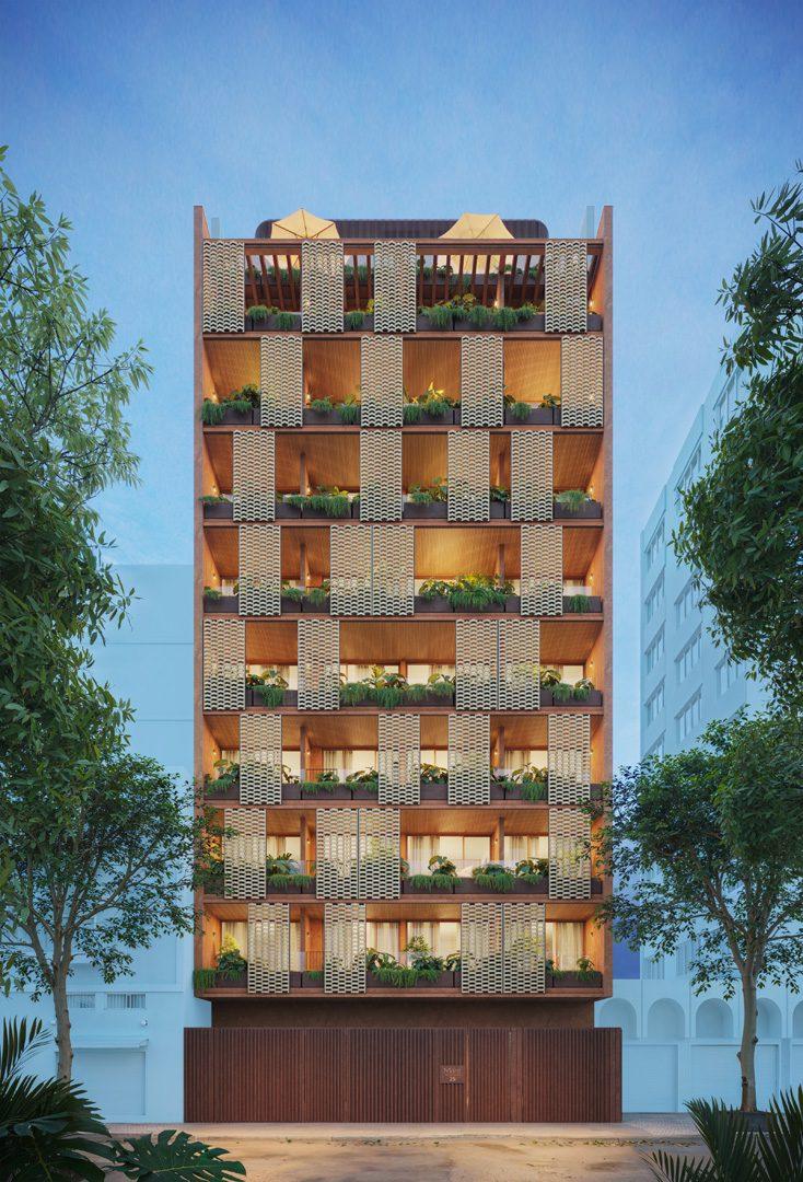 A arquitetura é assinada pelo escritório Bernardes Arquitetura, referência nacional em projetos urbanos e residenciais contemporâneos.