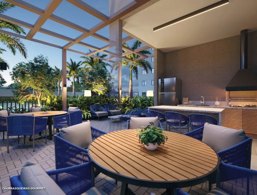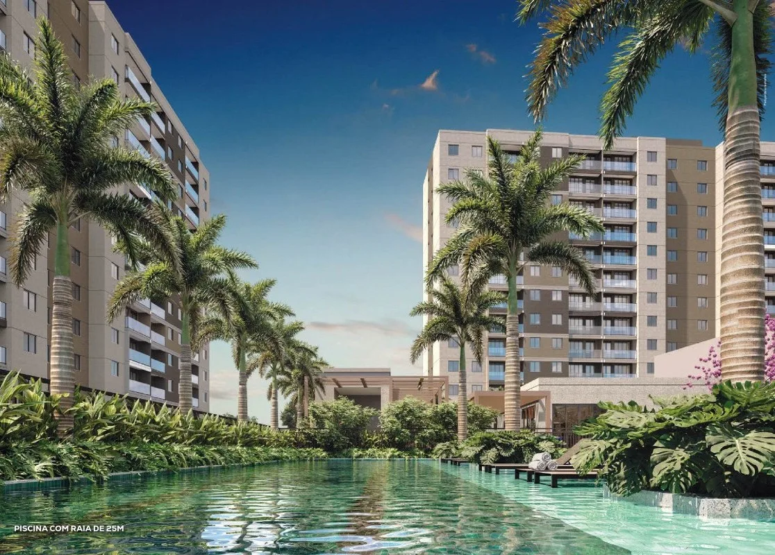 A área de lazer é completa, com piscina adulto com raia de 25 metros, piscina infantil, deck molhado, academia, churrasqueira, bar, espaço zen, playground, salão de festas, quadra de areia, brinquedoteca, pista de cooper, pet place e espaço games, oferecendo diversas opções de entretenimento para toda a família. A segurança é garantida com sistemas avançados de controle de acesso e vigilância.