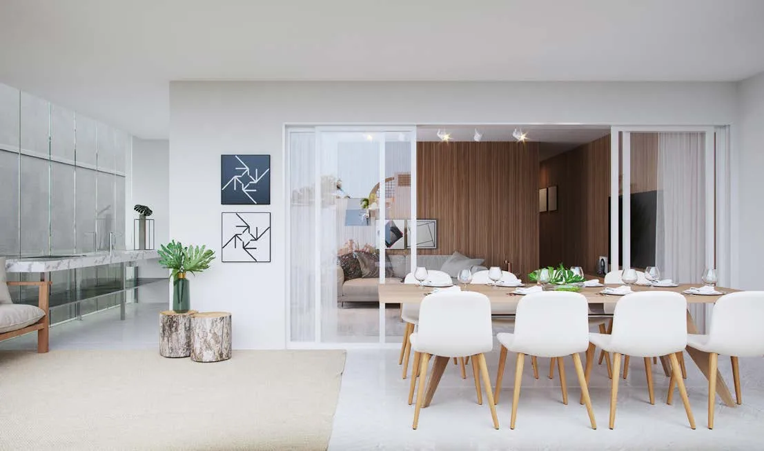 A área de lazer interna disponibilizará espaço fitness, salas de repouso e massagem, sauna, espaços gourmet e kids, além de dois incríveis terraços com piscina. Alguns serviços também estarão disponíveis para que os moradores usufruam de maior praticidade para o dia a dia, como postos de calibragem digital, de recarga para veículos e bicicletas elétricas, além de espaço para o recebimento e armazenamento de encomendas.