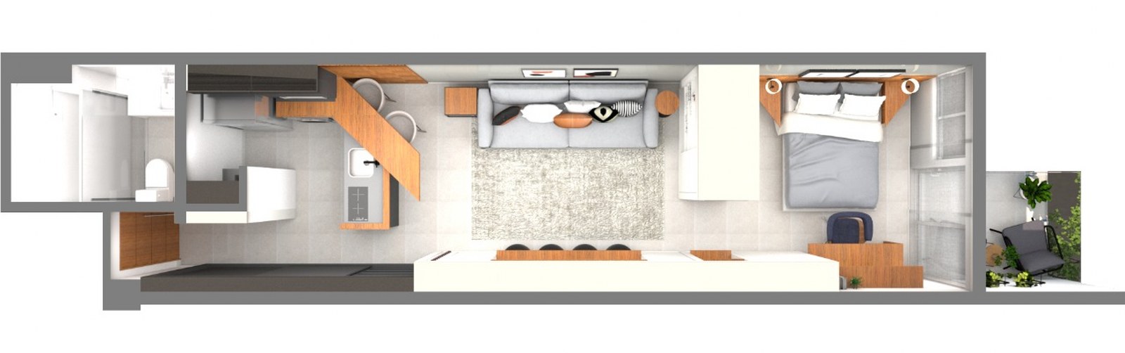 O empreendimento conta com studios e apartamentos garden, com metragens entre 39 m² e 70 m², ideais para solteiros, casais ou investidores.