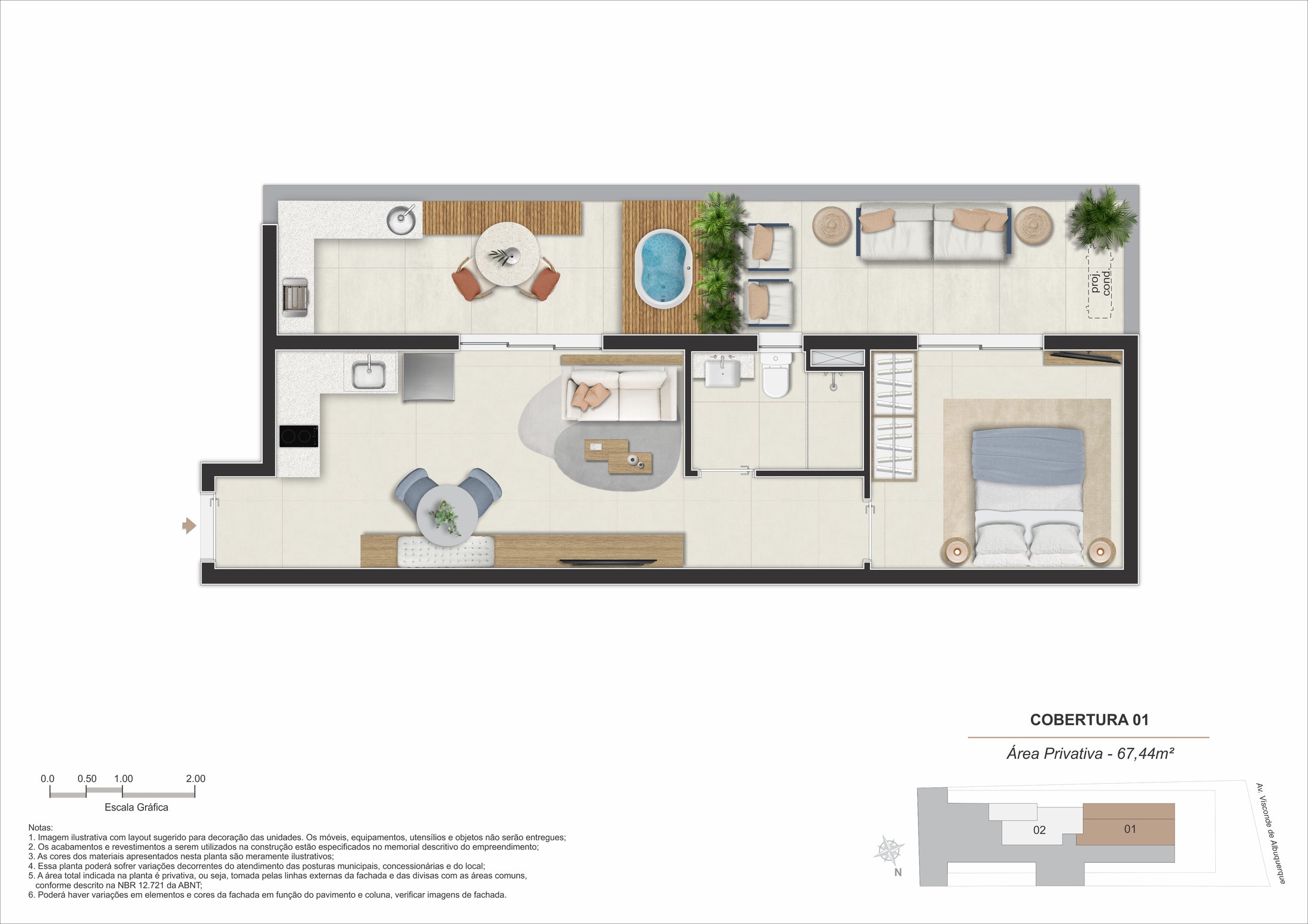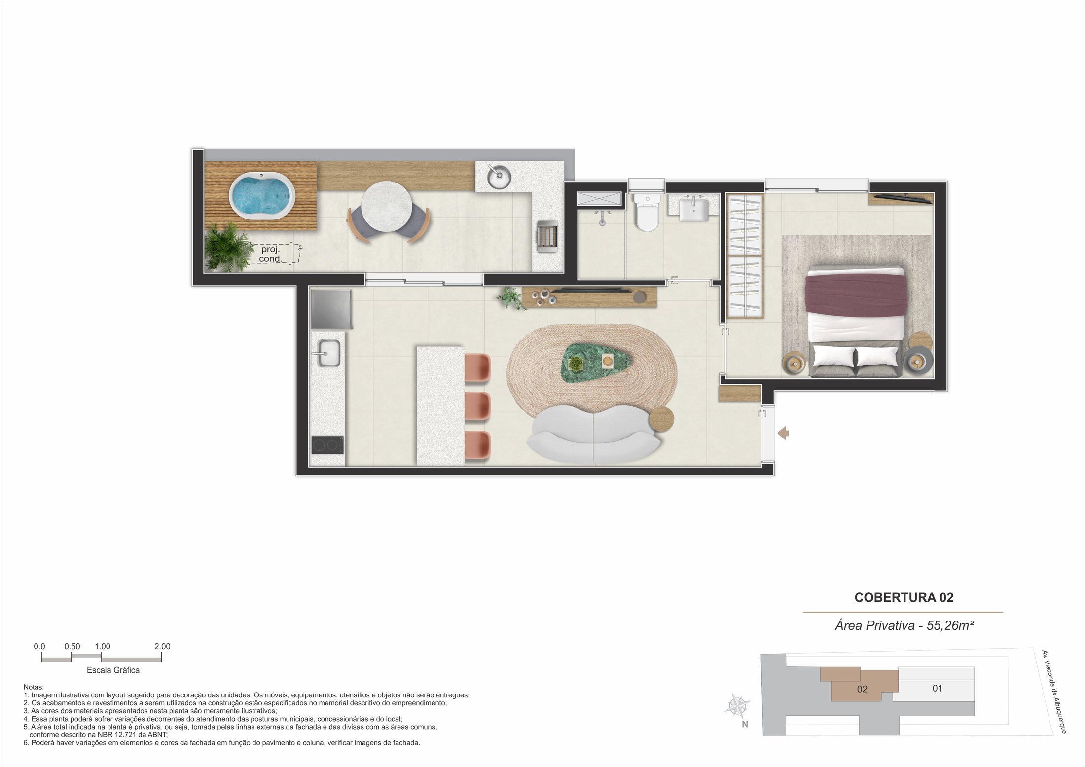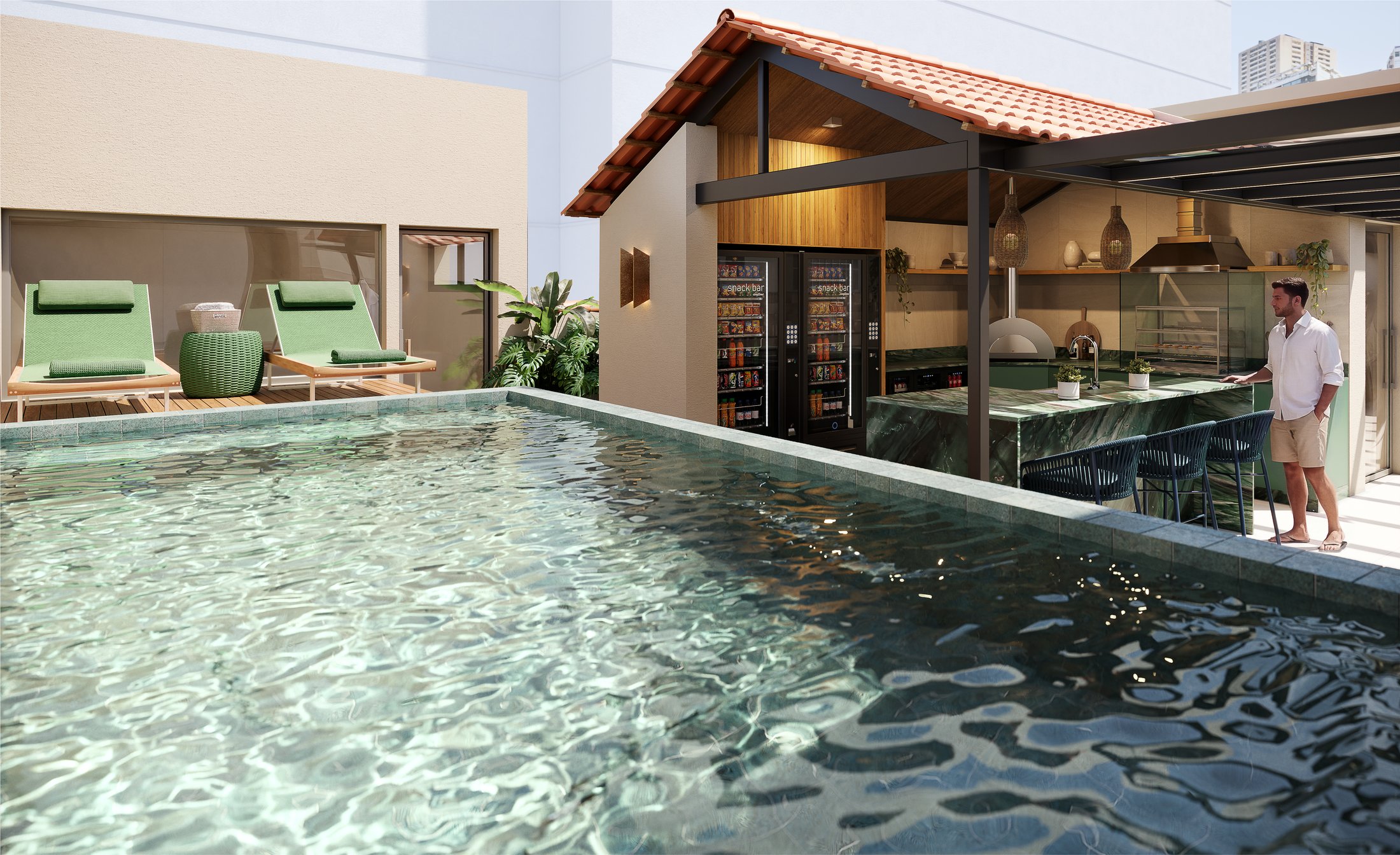 O condomínio foi planejado para oferecer estrutura completa em um formato compatível com a rotina contemporânea, com áreas comuns distribuídas entre térreo e rooftop e foco em conveniência, bem-estar e funcionalidade.