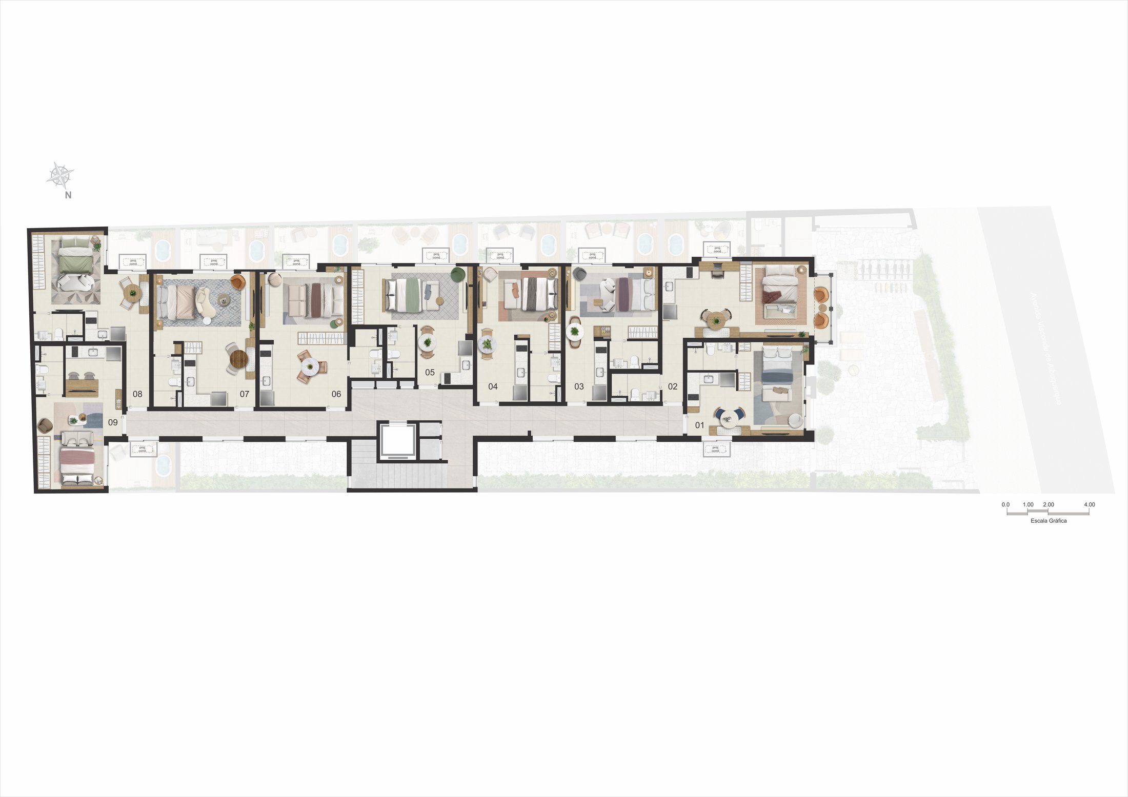 O Stay 360 Leblon apresenta tipologias voltadas a diferentes estratégias de compra, com unidades Studio, Garden e Coberturas Lineares. As plantas priorizam integração dos ambientes, funcionalidade e aproveitamento interno, além de acesso a áreas comuns planejadas para acompanhar a rotina urbana dos moradores.