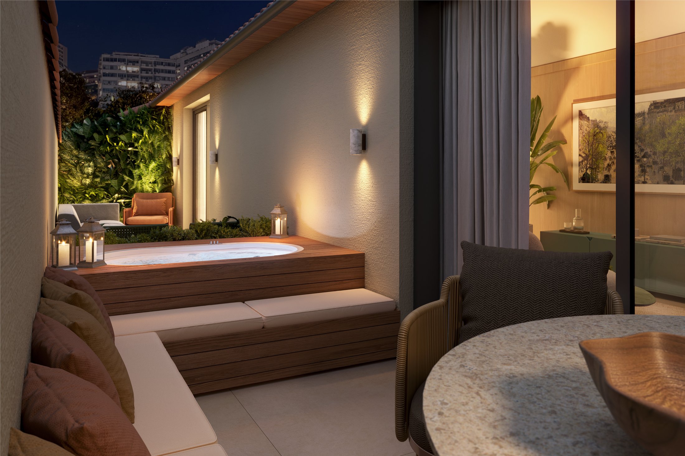 As unidades Garden do Stay 360 Leblon oferecem metragens ampliadas e terraços privativos, criando uma experiência de uso mais flexível. Essa tipologia combina conforto interno com área externa exclusiva, sendo uma opção interessante para quem valoriza espaço aberto dentro do contexto urbano do Leblon.