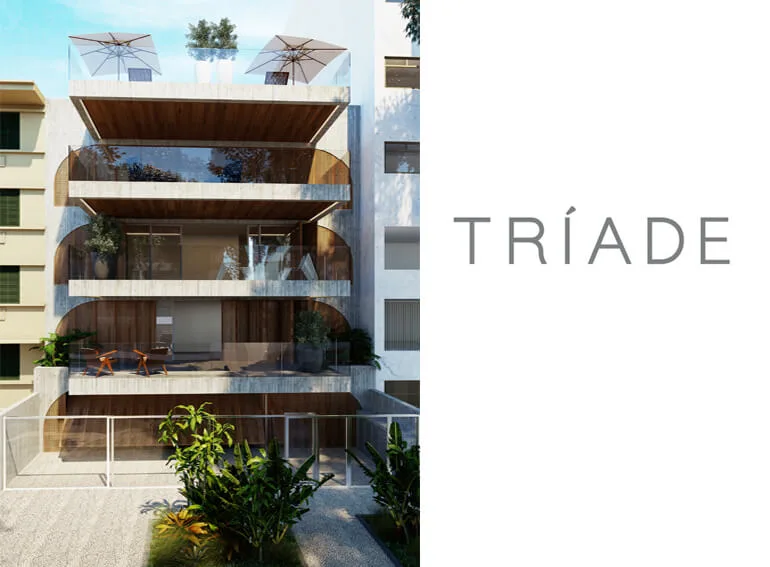 Os imóveis incorporados em sua estrutura são exclusivos, sendo somente 3 unidades nas tipologias garden, tipo e cobertura duplex, com metragens de 156 m² a 313 m², todas com 3 suítes. As características do projeto evidenciam o motivo do nome ser Tríade, pela união de suas 3 unidades dispostas em 3 andares, cada uma com 3 luxuosas suítes.