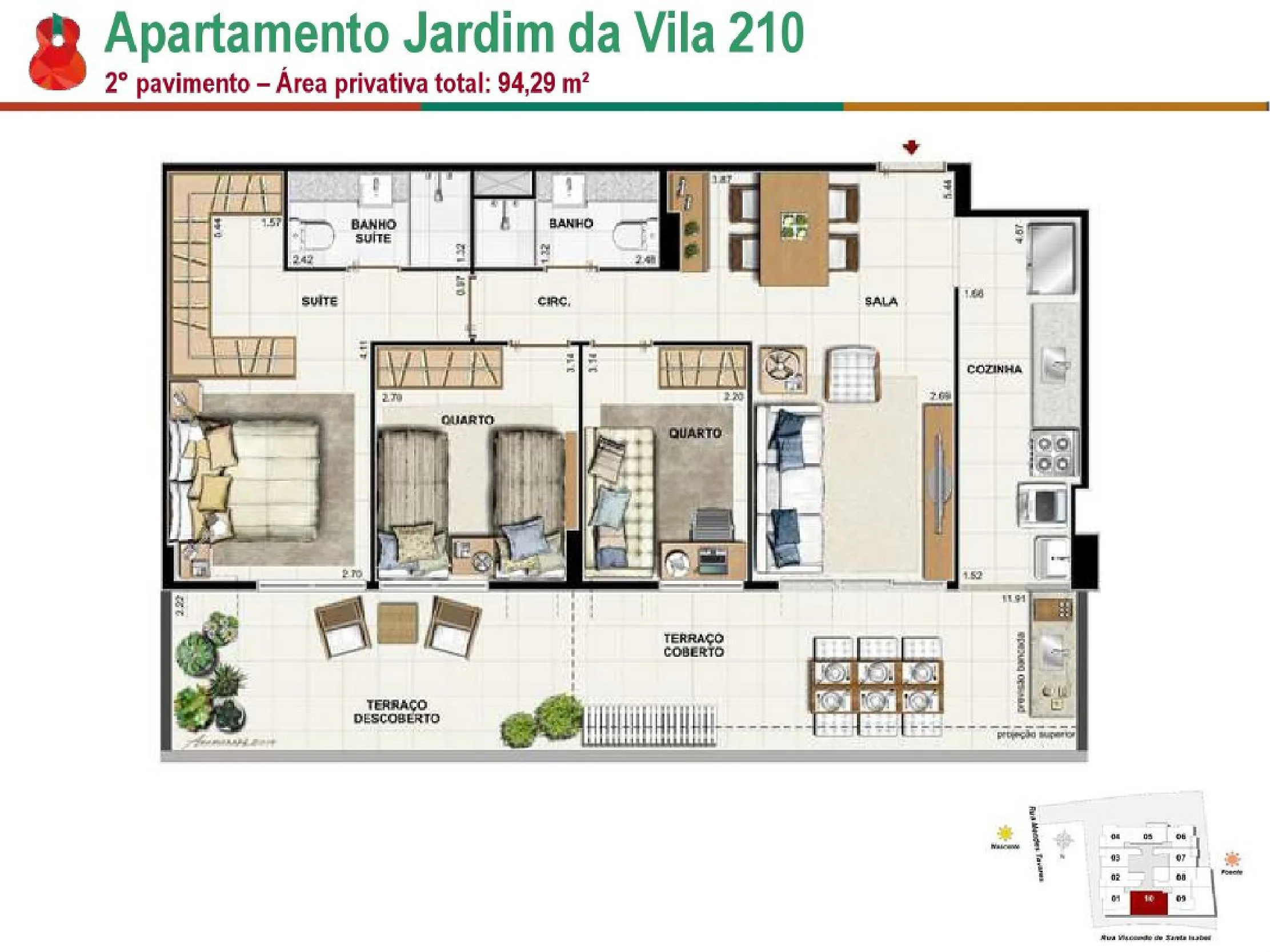 | Apartamento Garden | R$ 569.000,00 | 94 m² | 3 | 1 |