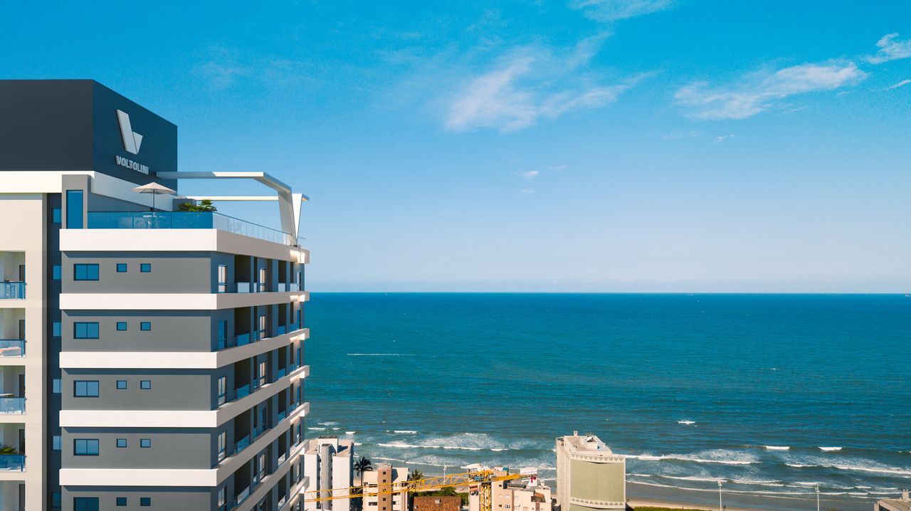 Os principais motivos são a localização a 250 metros do mar, a infraestrutura completa de lazer no rooftop e a garantia de qualidade da Voltoli Construtora.