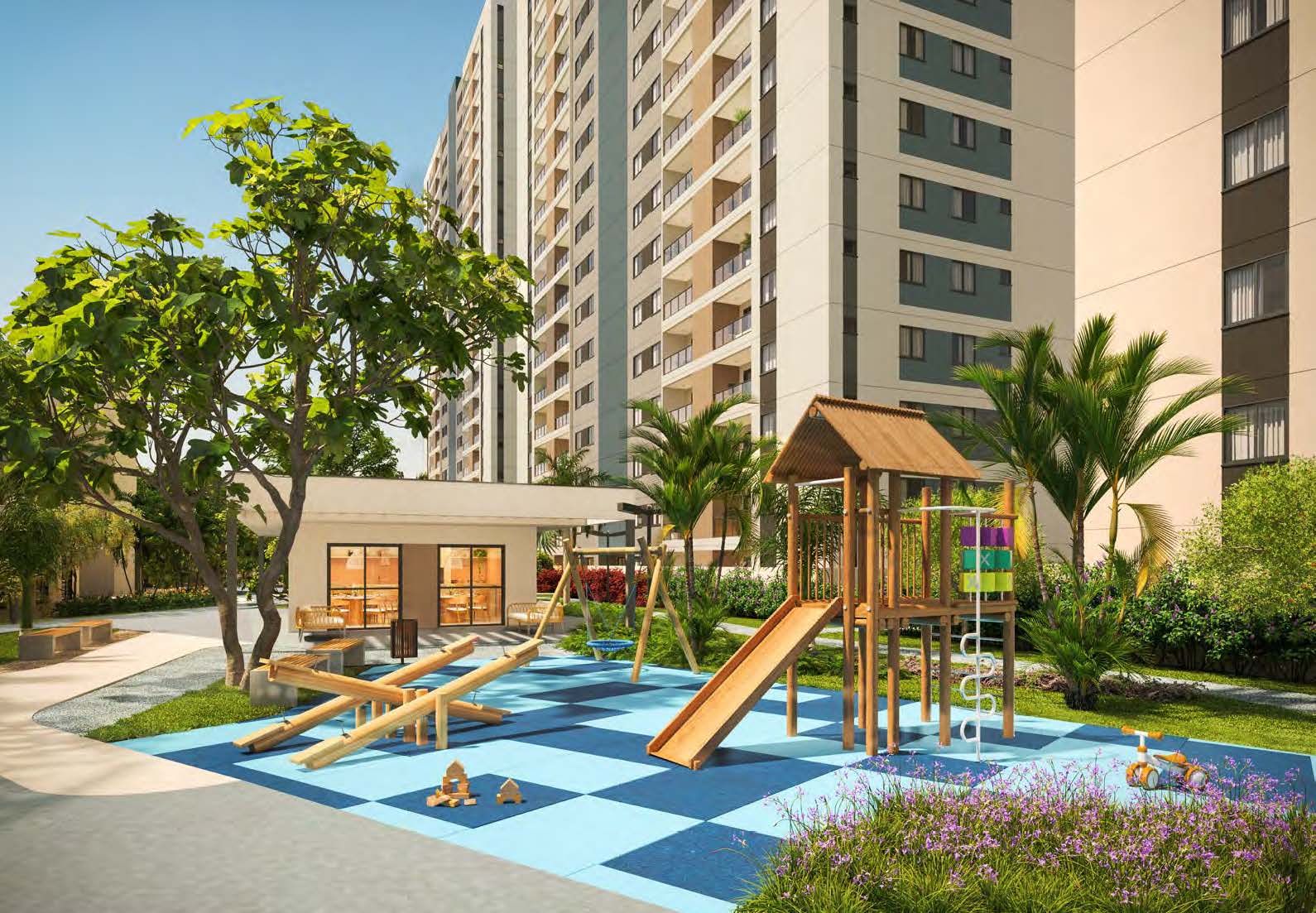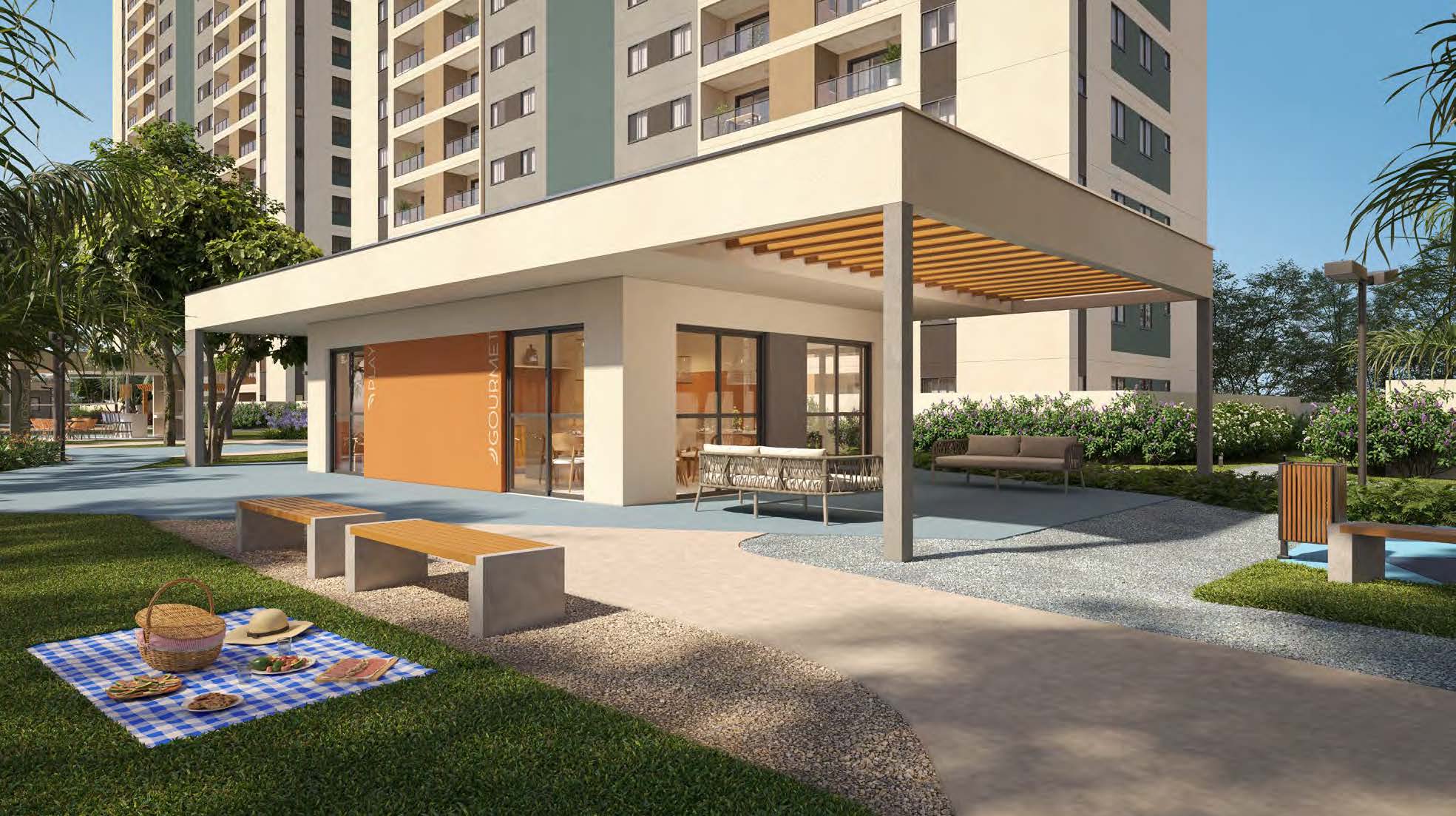 - Salão de festas gourmet, espaço play e playground