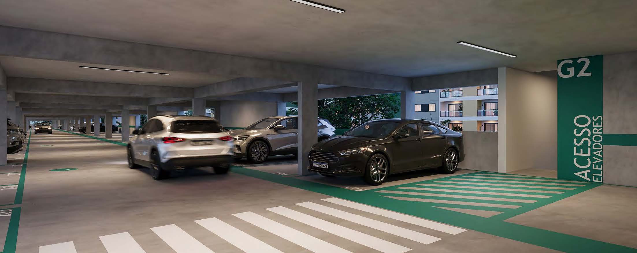 Conta com lâmpadas de LED nas áreas comuns, sensores de presença, reaproveitamento de águas pluviais e otimização energética.