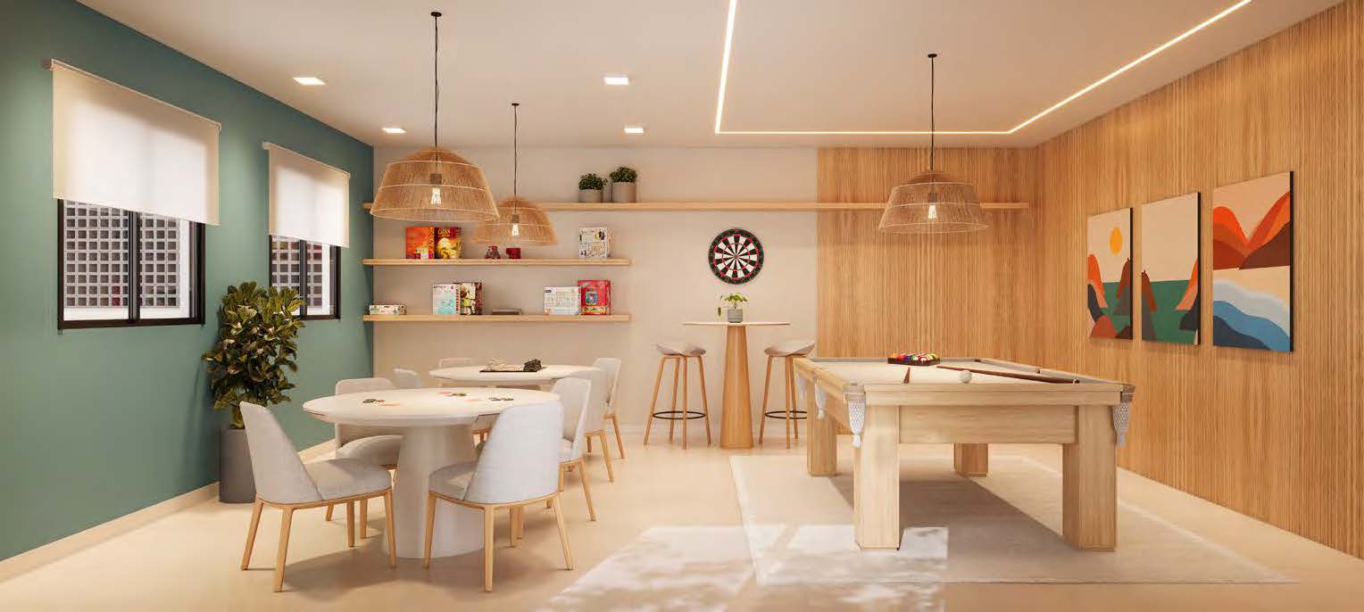 - Sala de jogos e lavanderia compartilhada