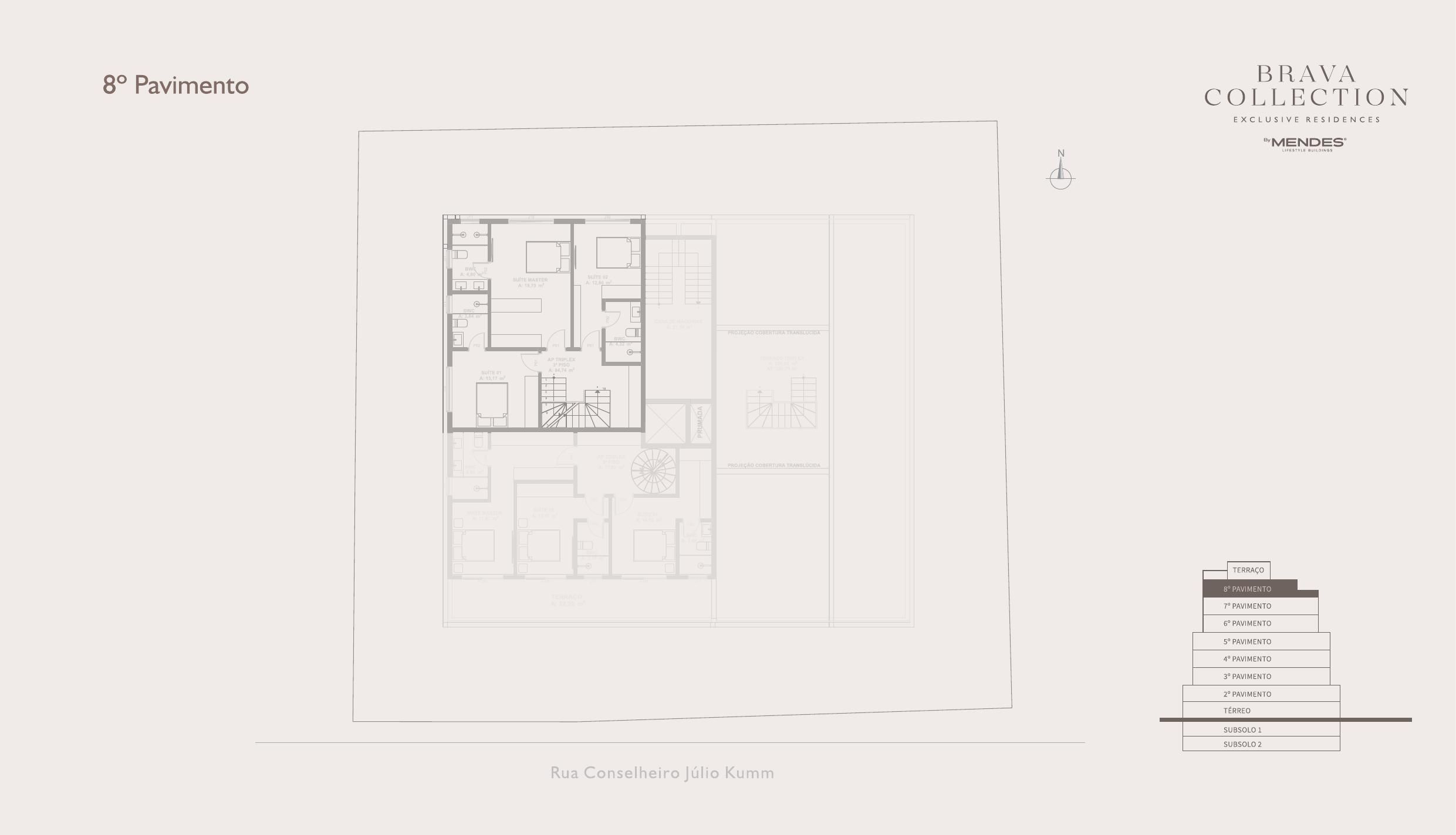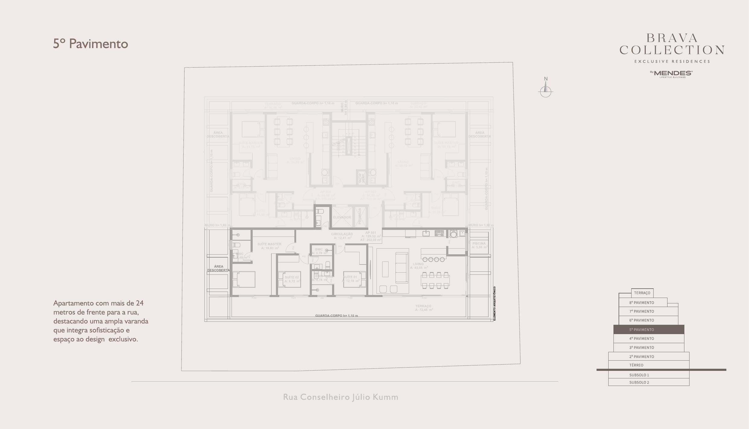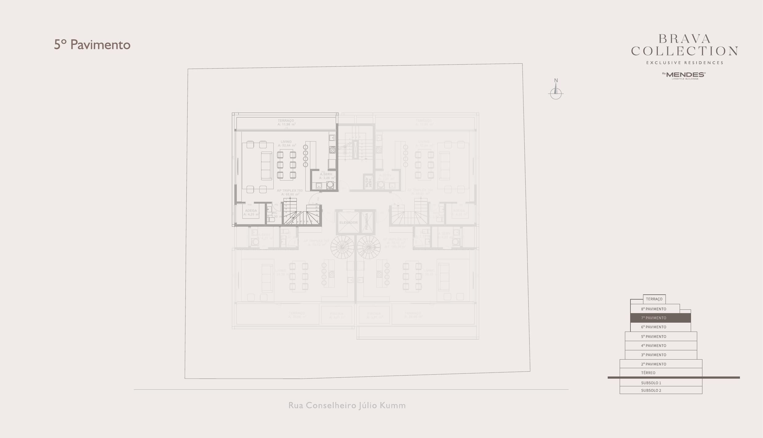 O Brava Collection é um projeto exclusivo da construtora MENDES, incorporadora com atuação consolidada em Santa Catarina. Estamos localizados na Rua Conselheiro Júlio Kumm, 46, no bairro Praia Brava, em Itajaí, Santa Catarina. O projeto arquitetônico foi desenvolvido por um escritório de arquitetura de renome, focado em maximizar a vista panorâmica e o conforto acústico.
