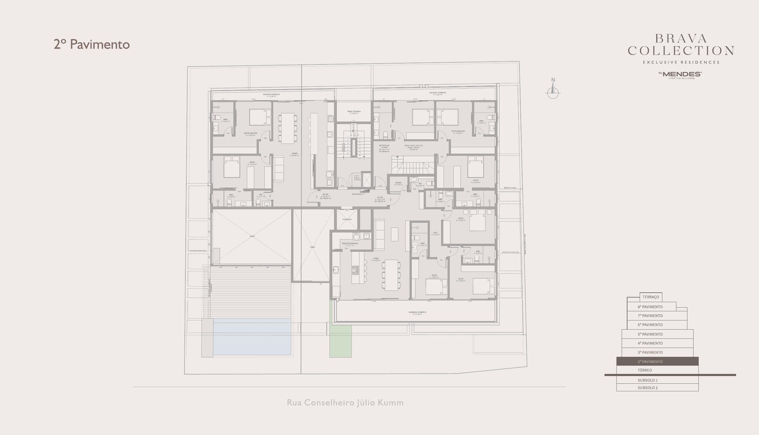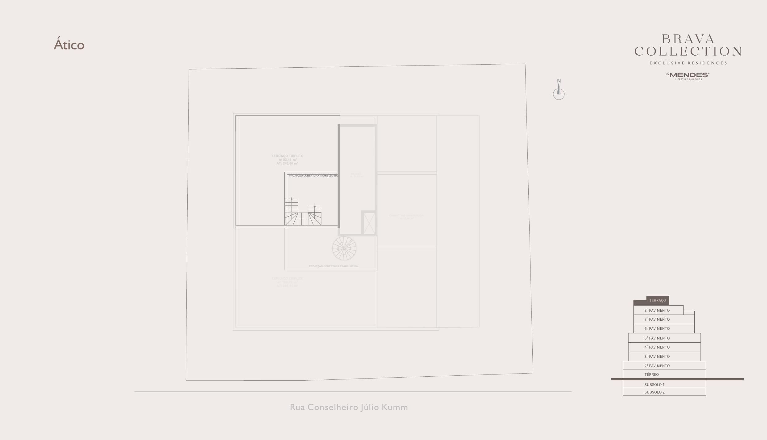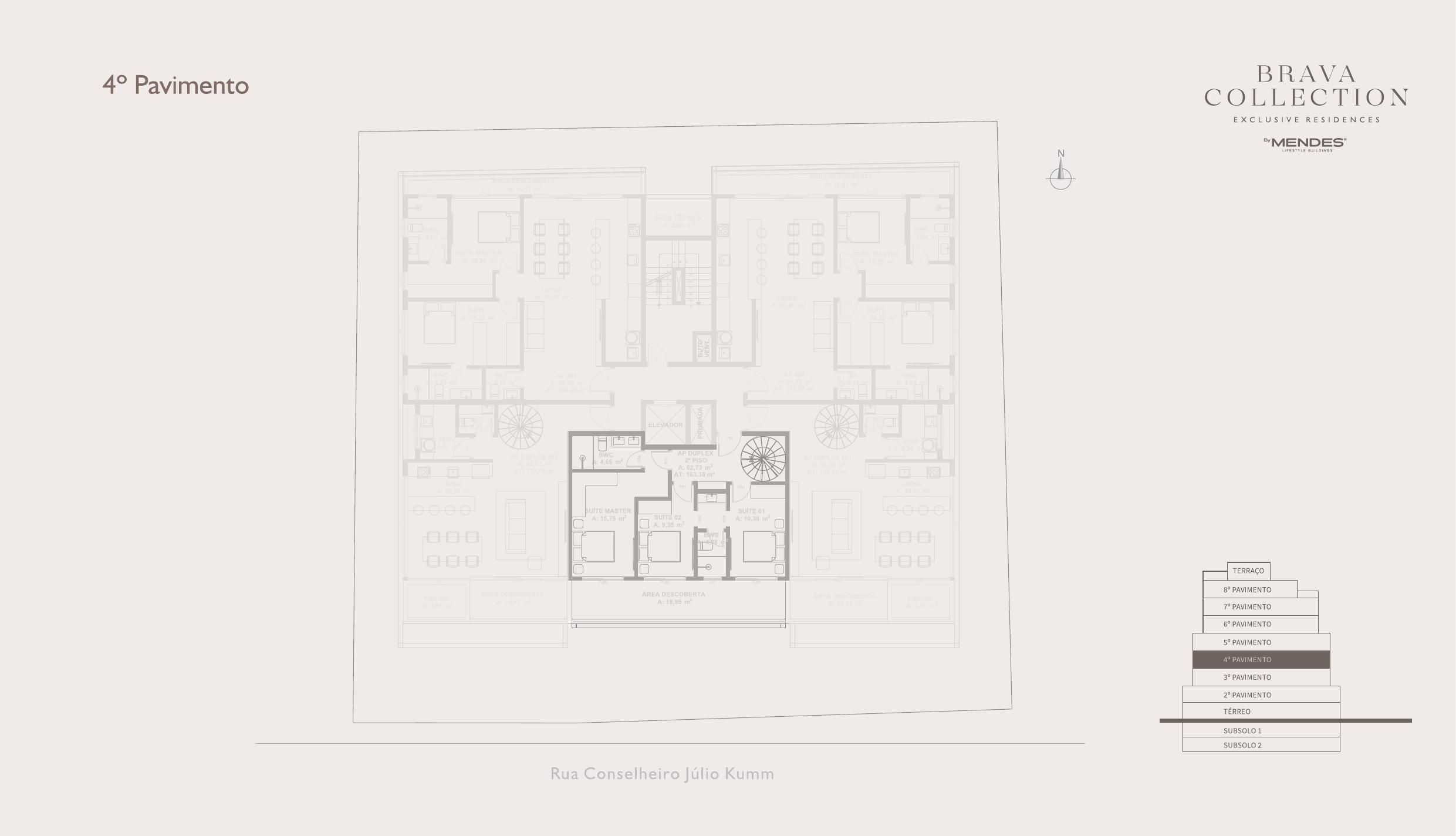 O Brava Collection é um projeto exclusivo da construtora MENDES, incorporadora com atuação consolidada em Santa Catarina. Estamos localizados na Rua Conselheiro Júlio Kumm, 46, no bairro Praia Brava, em Itajaí, Santa Catarina. O projeto arquitetônico foi desenvolvido por um escritório de arquitetura de renome, focado em maximizar a vista panorâmica e o conforto acústico.