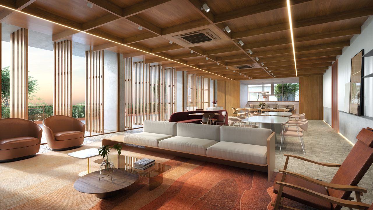 O design é assinado por Vanessa Larré e se destaca pela fachada com tecnologia Windscreen da Hunter Douglas, que se movimenta organicamente simulando o oceano.