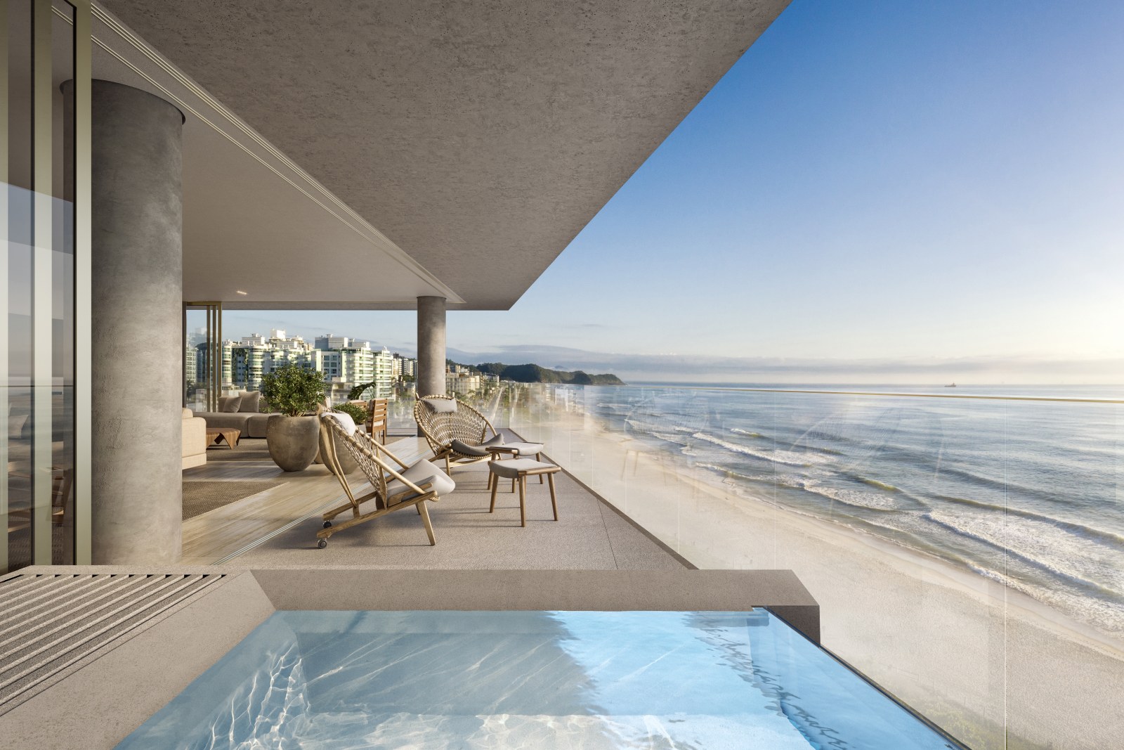 O Bravo Residences apresenta 6 unidades exclusivas em tipologias diferenciadas, incluindo apartamento garden duplex de 727 m² e apartamentos tipo de 330 m² a 440 m², todos com 4 suítes e 4 vagas por unidade, além de lazer externo com piscina privativa nas unidades tipo selecionadas. Assinado pelo Studio Arthur Casas na arquitetura, com paisagismo da Cardim Arquitetura Paisagística, integra vista mar, materiais de alto padrão e soluções contemporâneas de conforto, tecnologia e privacidade em Itajaí.
