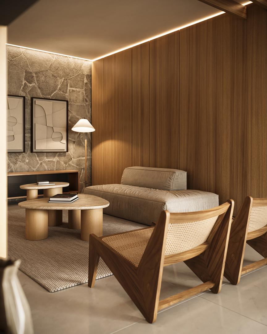 O design do Garden Park Home Club foi desenvolvido por um escritório de arquitetura de renome, que priorizou espaços funcionais, integração entre ambientes e acabamentos de alto padrão. A proposta contempla ambientes iluminados, áreas sociais amplas e uma estética contemporânea.