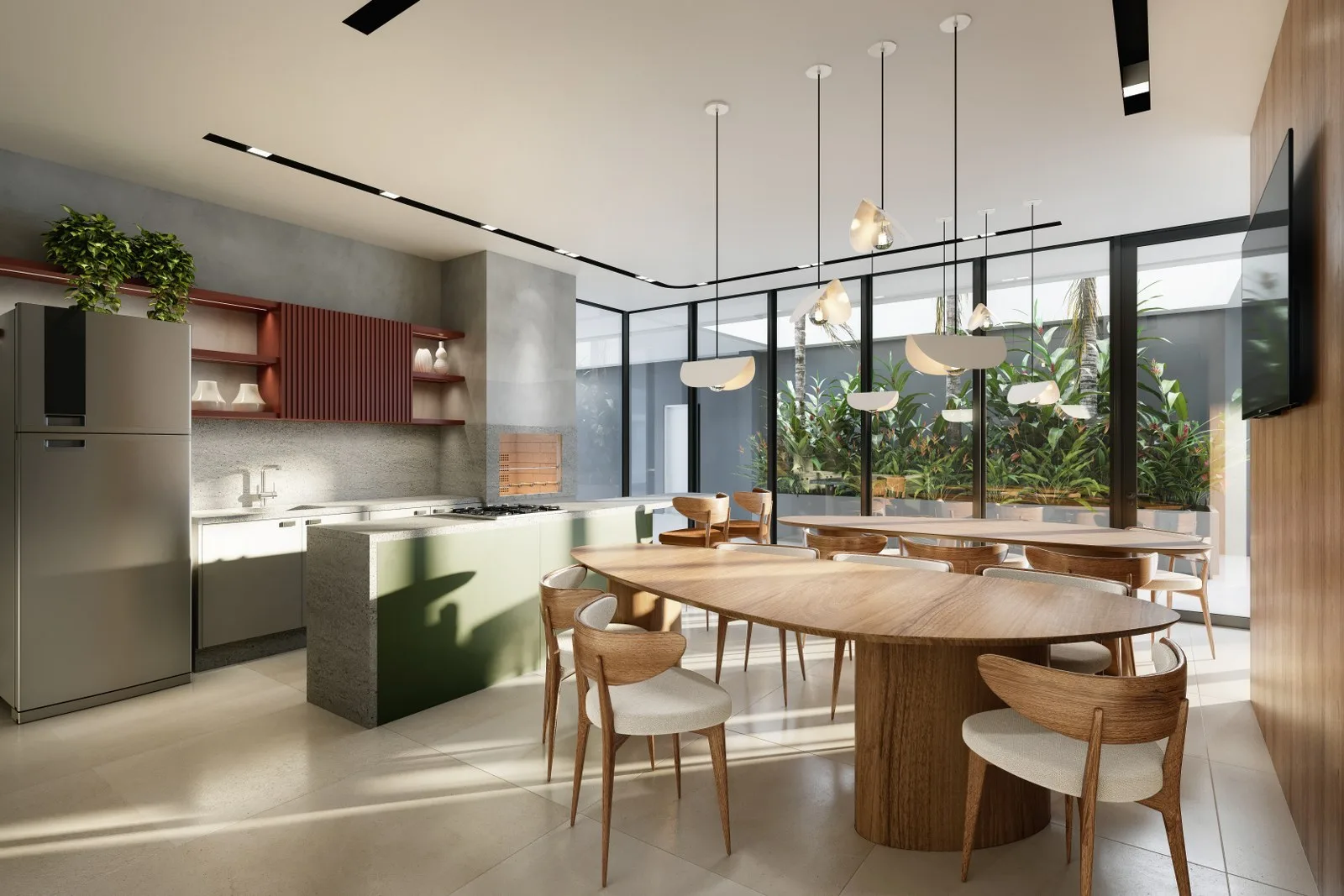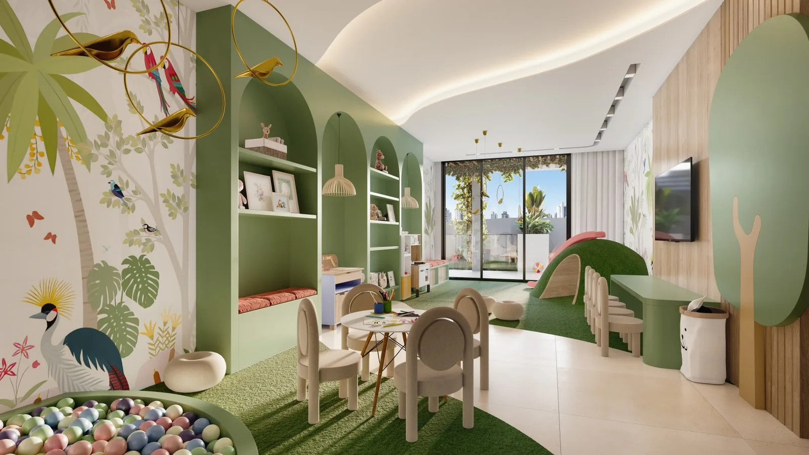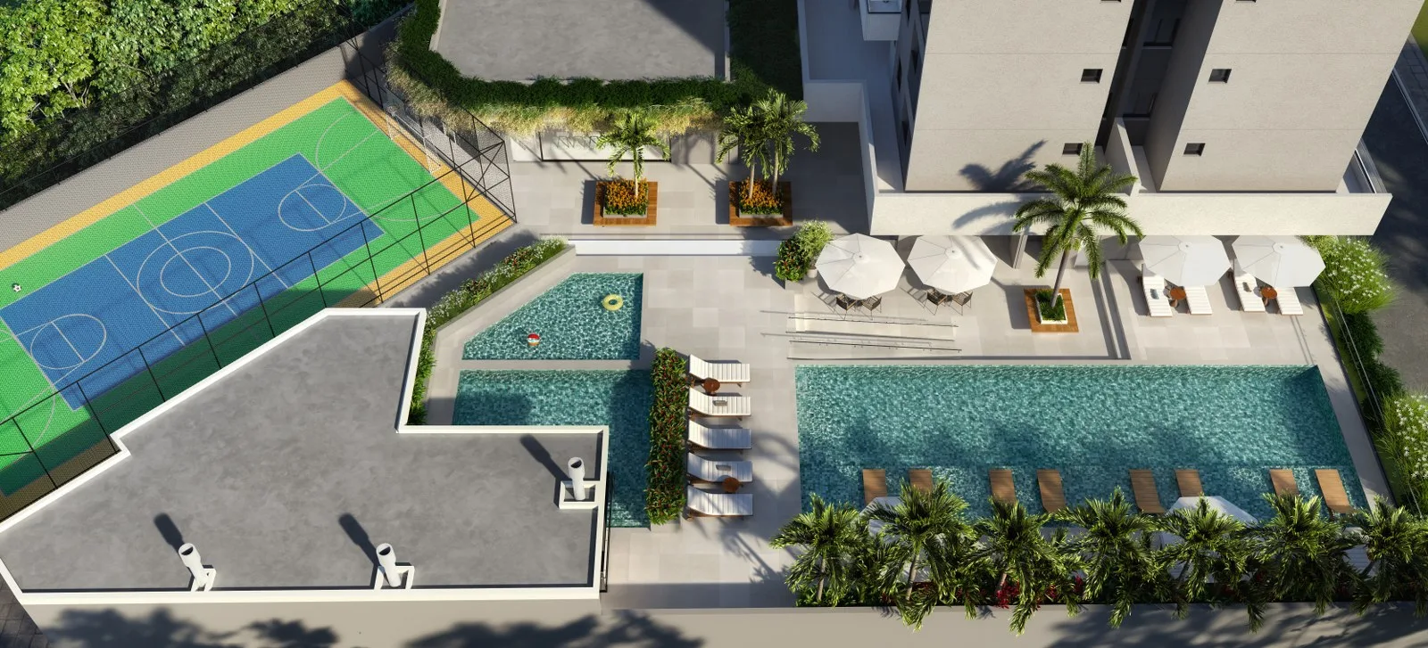 O condomínio dispõe de ampla infraestrutura de lazer com piscina adulto e infantil, academia equipada, brinquedoteca, salão de festas, espaço gourmet, coworking e mais. A segurança inclui controle de acesso, monitoramento por câmeras e portaria remota. O projeto também contempla bicicletário, pet place e horta compartilhada, reforçando o compromisso com a sustentabilidade e o estilo de vida contemporâneo.