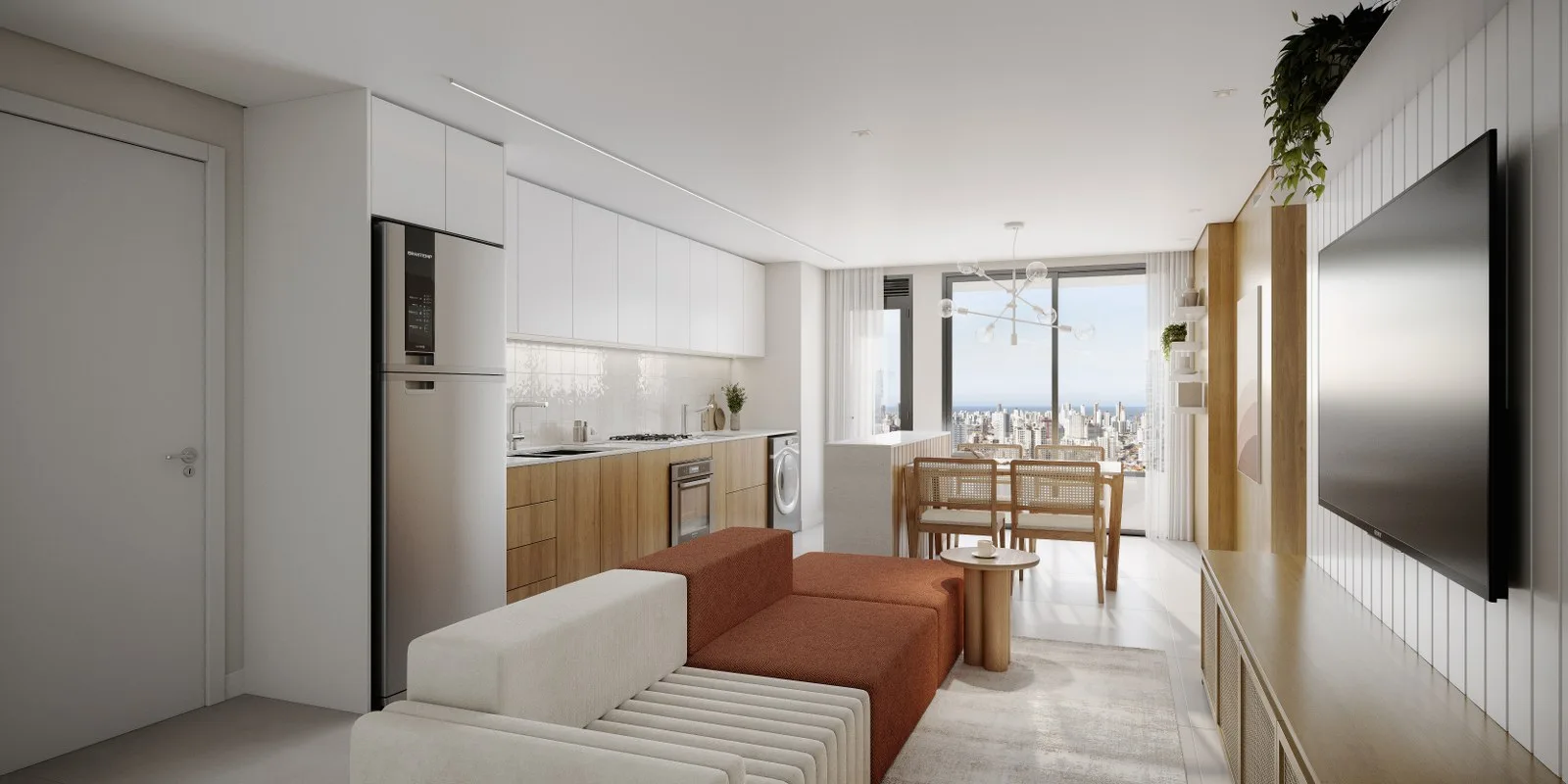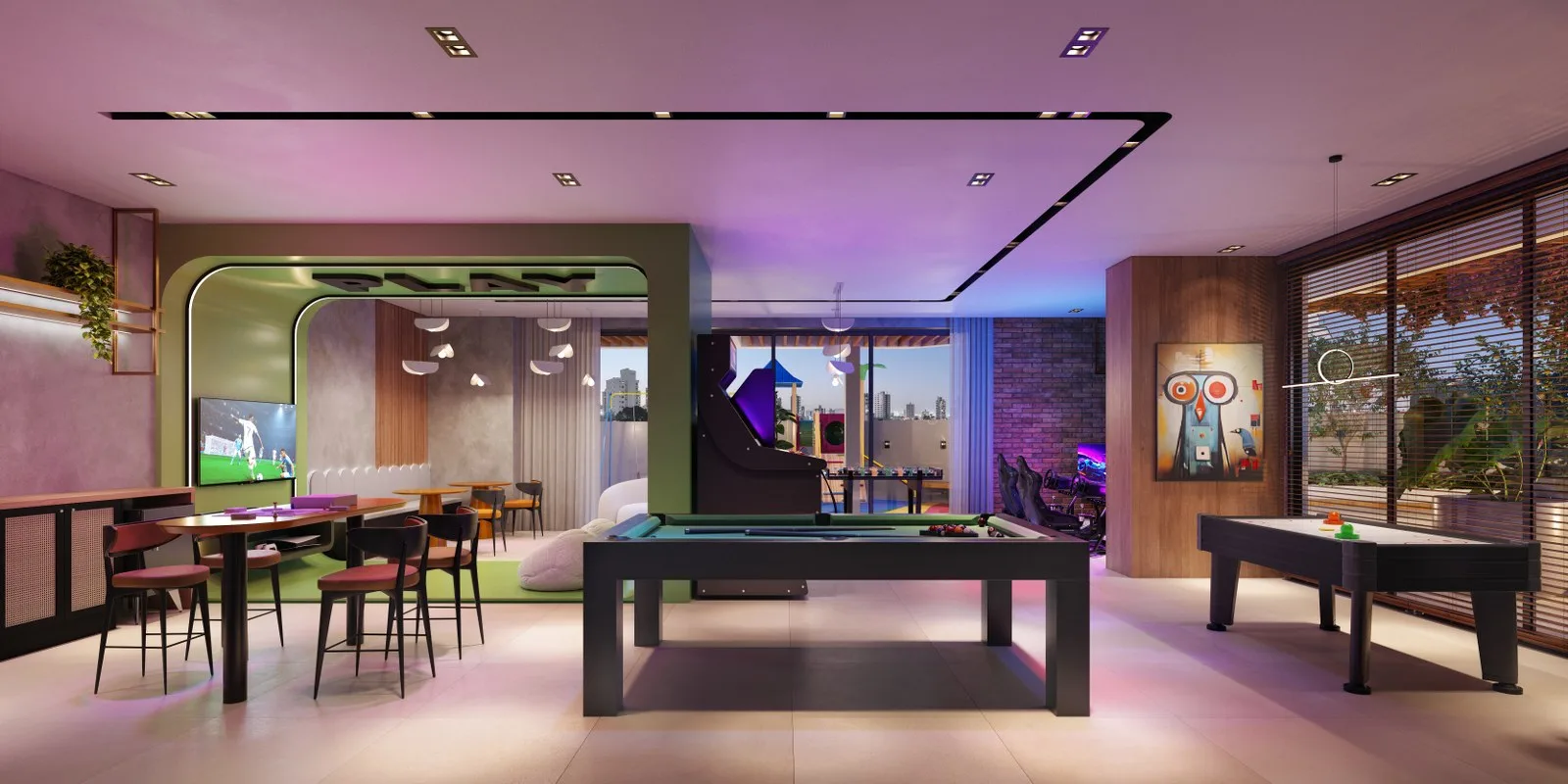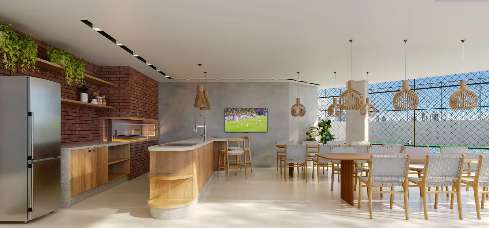 O condomínio dispõe de ampla infraestrutura de lazer com piscina adulto e infantil, academia equipada, brinquedoteca, salão de festas, espaço gourmet, coworking e mais. A segurança inclui controle de acesso, monitoramento por câmeras e portaria remota. O projeto também contempla bicicletário, pet place e horta compartilhada, reforçando o compromisso com a sustentabilidade e o estilo de vida contemporâneo.