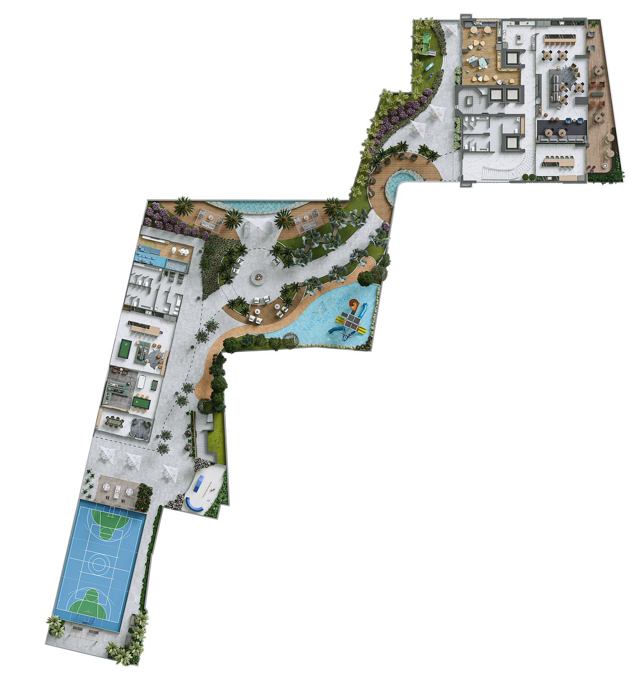 A área de lazer do Harmony Ocean Front foi projetada para oferecer uma experiência completa de resort urbano. Destacamos o rooftop a 185m de altura, considerado o mais alto do Brasil, com mirante ocean view, além de piscinas adulta e infantil cobertas e aquecidas. O sistema de segurança inclui portão automatizado e gerador de energia para elevadores e áreas comuns. A sustentabilidade é abordada com o reaproveitamento de água. Os serviços incluem concierge e área exclusiva para funcionários.
