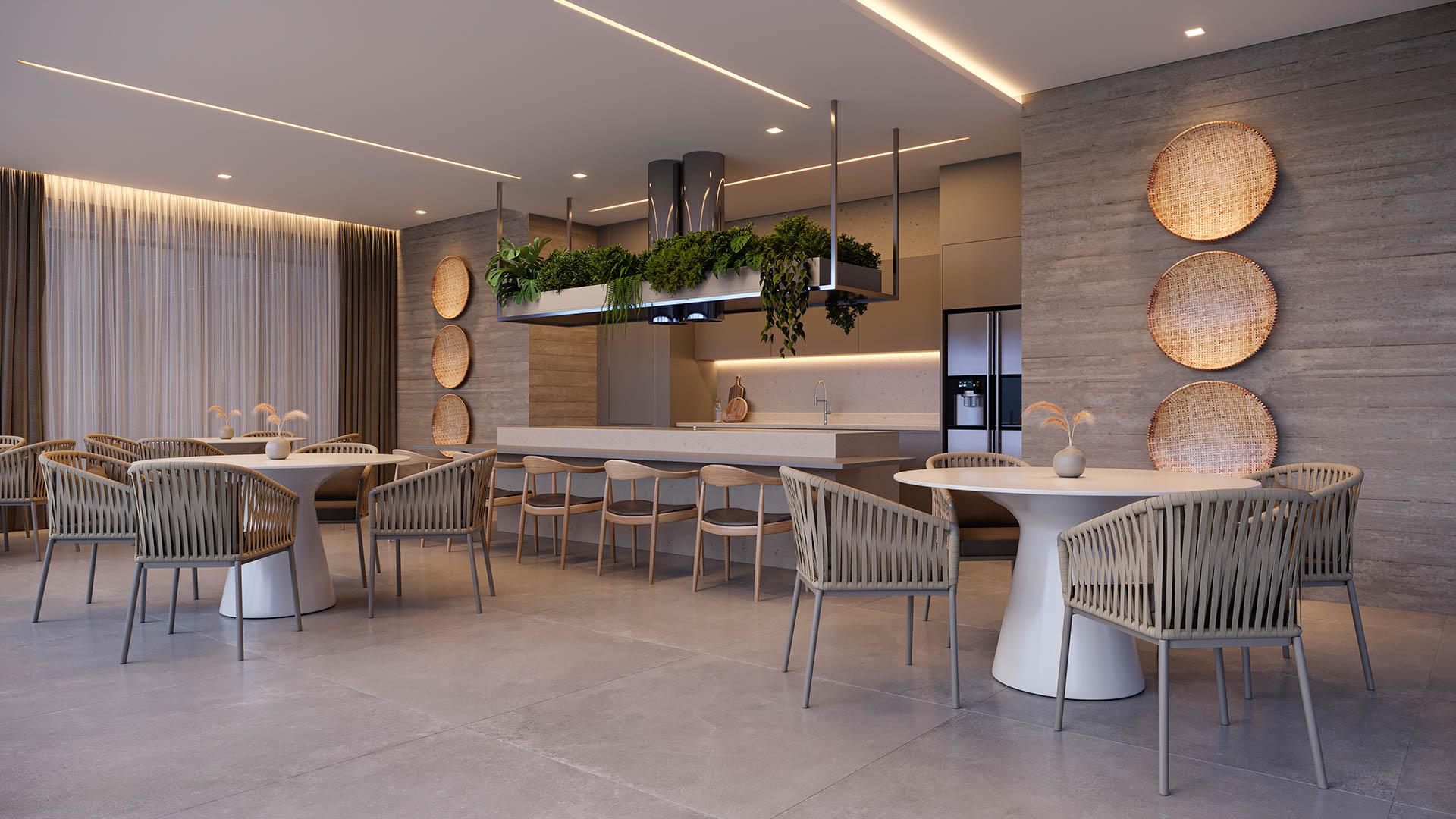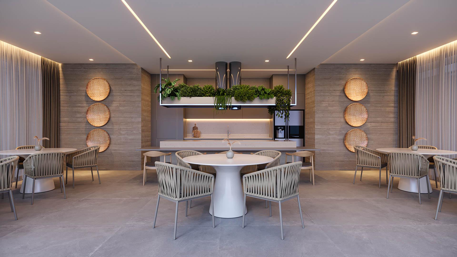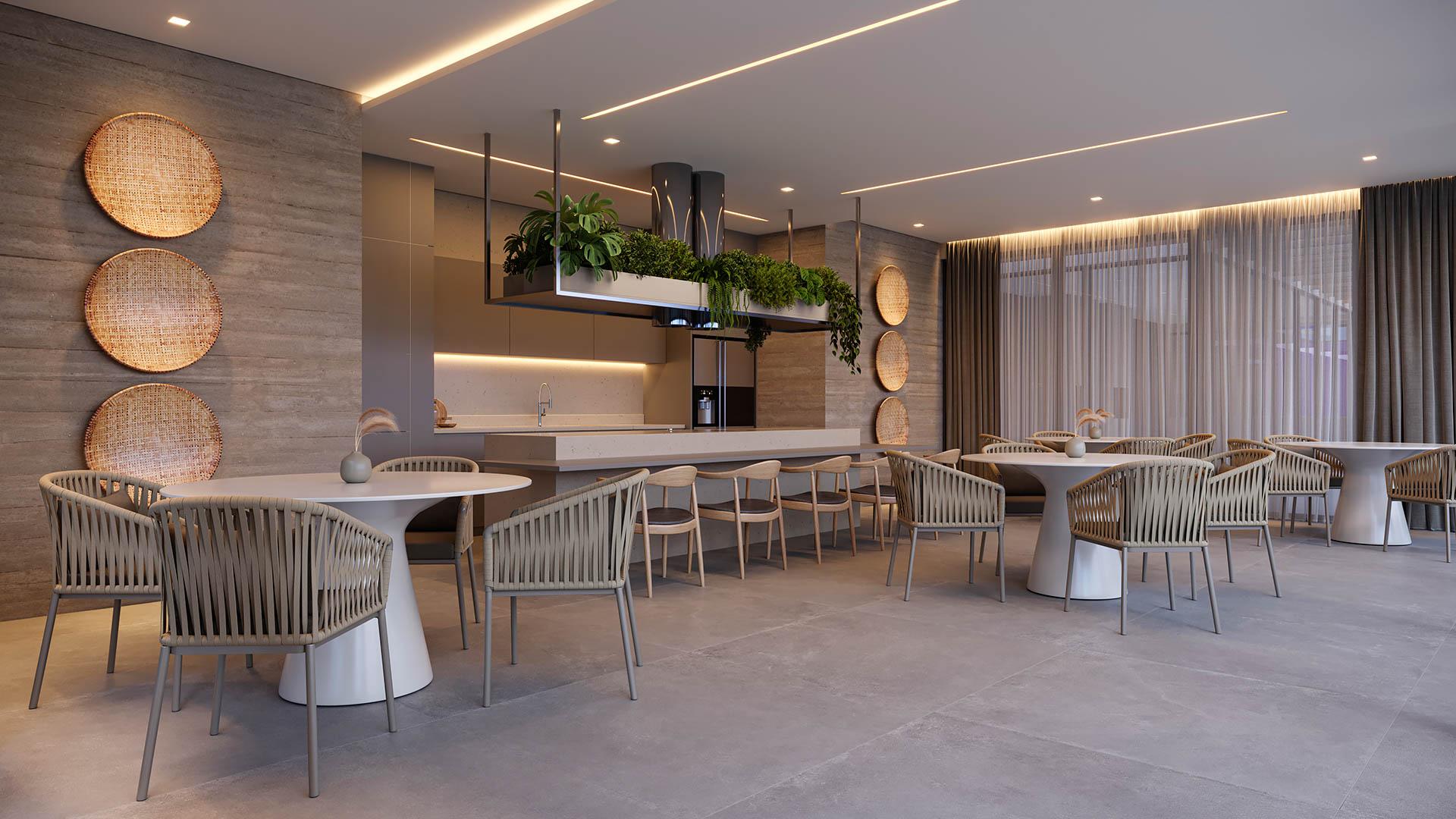 O design é contemporâneo, assinado pelos escritórios Jayme Bernardo Arquitetos e Chiro, unindo sofisticação, funcionalidade e elegância em cada detalhe.