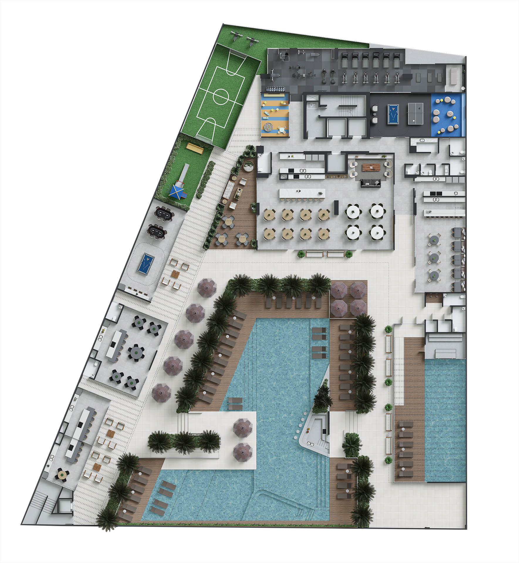 O High Tower oferece um condomínio completo, planejado para o lazer e bem-estar de todos os moradores. São diversos ambientes integrados, áreas de lazer cobertas e descobertas, além de infraestrutura moderna e segurança avançada.