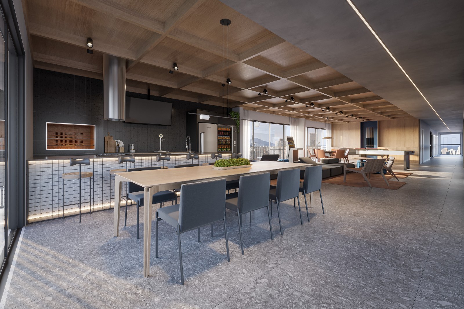Piscina, espaços gourmets externo e integrado, sala de jogos, coworking, academia, lavanderia e áreas de convivência integradas.