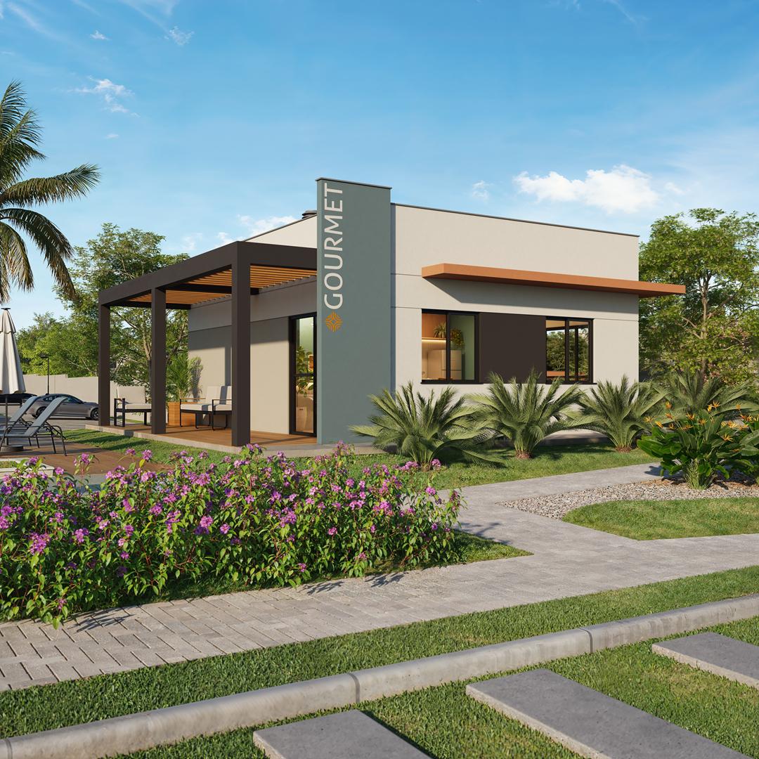 O projeto apresenta arquitetura contemporânea, com ambientes integrados, fachada moderna e áreas de lazer que valorizam o estilo de vida praiano.