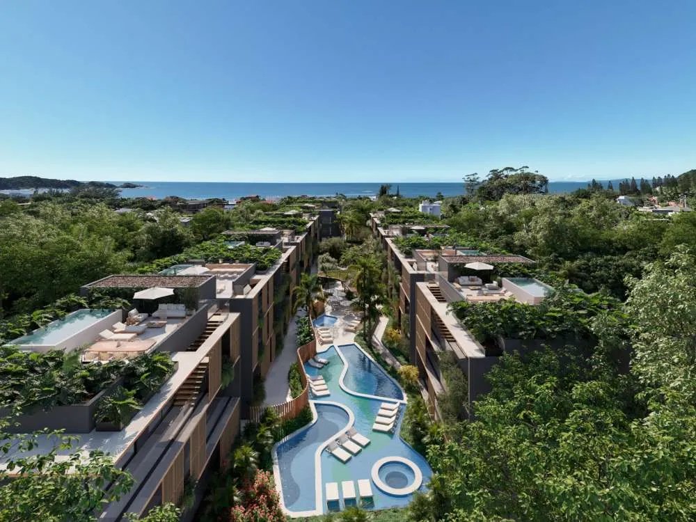O condomínio do Kariió Praia do Estaleiro foi planejado para manter baixa densidade e integração total com o entorno natural. A implantação privilegia áreas verdes, circulação discreta e ambientes destinados ao convívio. Entre os itens presentes estão: