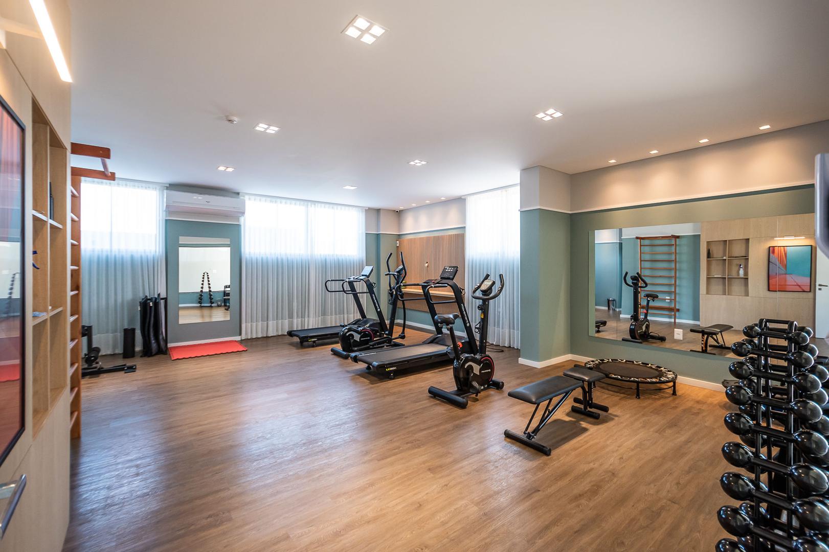 O condomínio conta com piscina, salão de festas, salão de jogos, academia, brinquedoteca, quiosque, espaço gourmet e lareira.