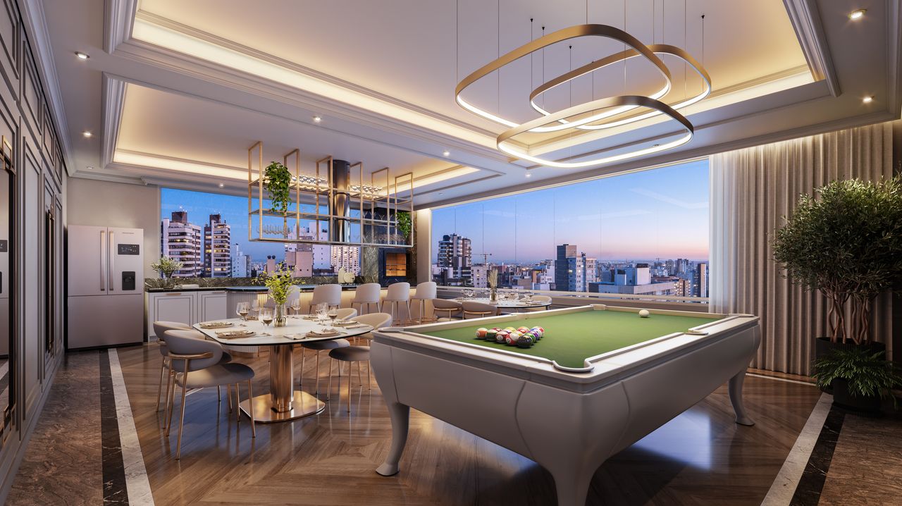 O design foca em um acabamento refinado, com destaque para o uso de porcelanato, piso vinílico nas áreas íntimas e persianas automatizadas nas unidades.