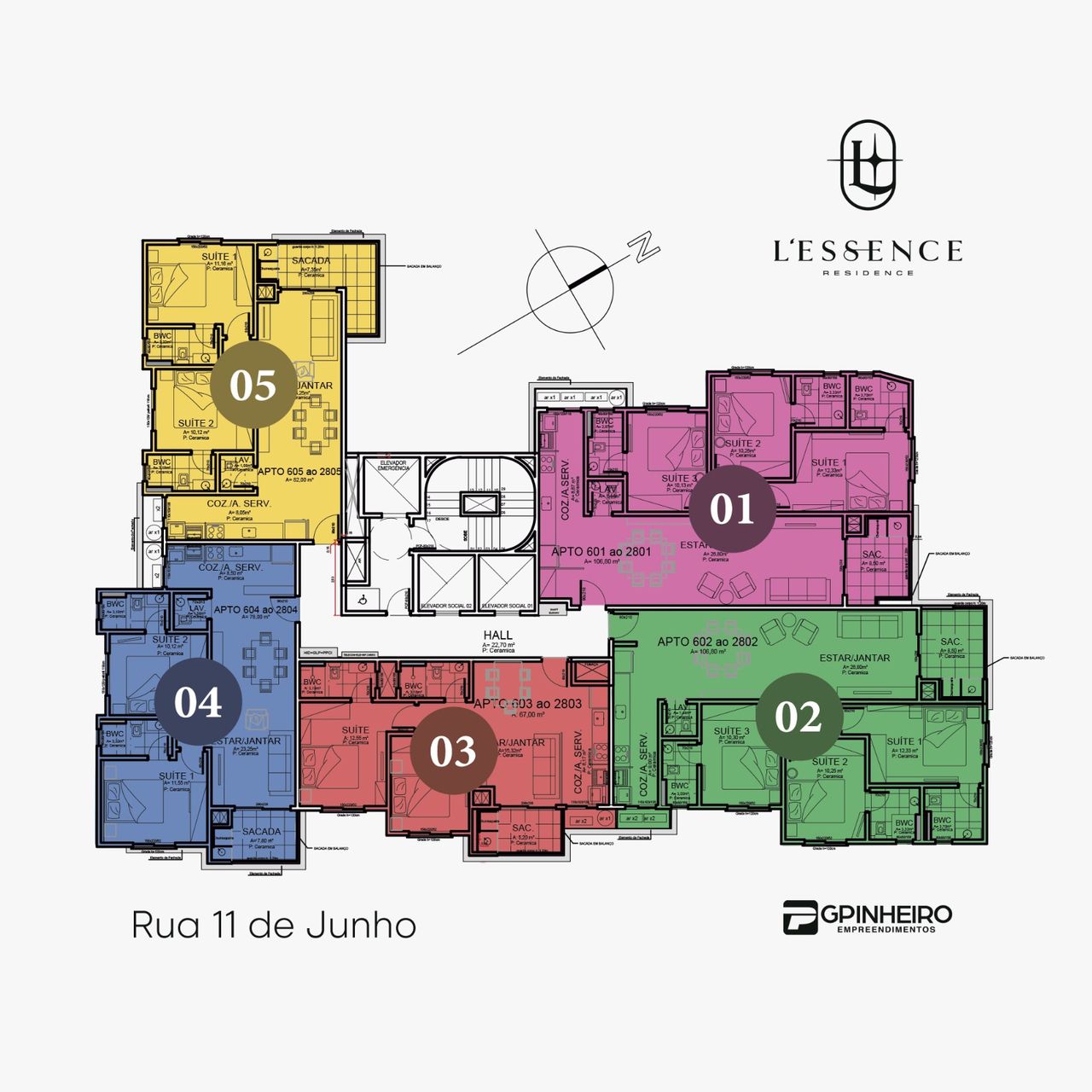 O empreendimento oferece apartamentos com tipologias que variam de 67,18 m² a 104,38 m², com 2 a 3 dormitórios.
