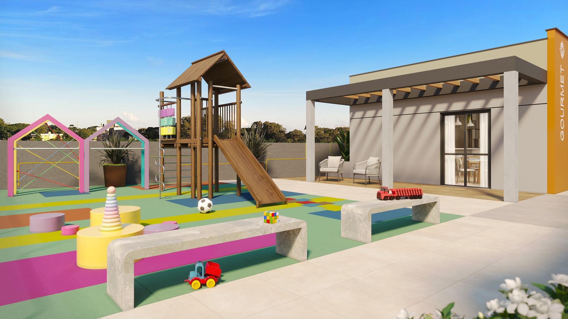O empreendimento oferece apartamentos tipo e garden, com opções de 2 e 3 dormitórios, todos com suíte, varanda e churrasqueira a carvão.