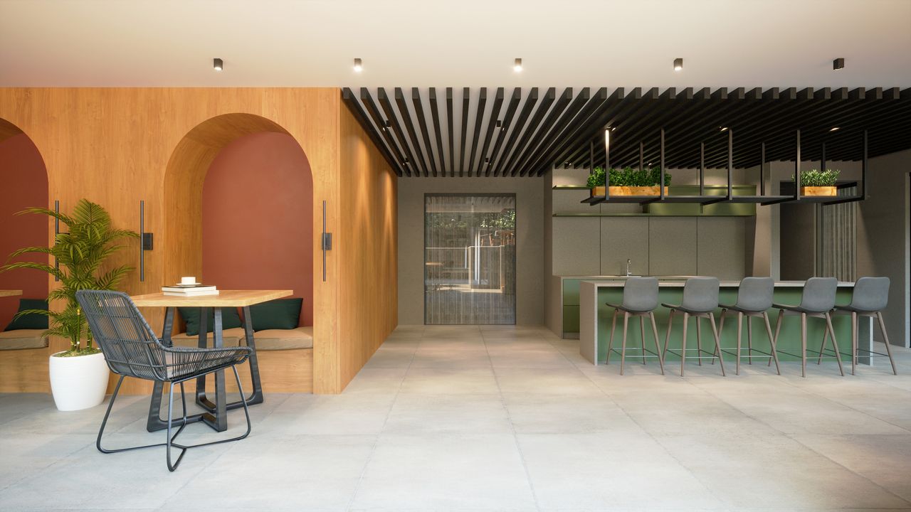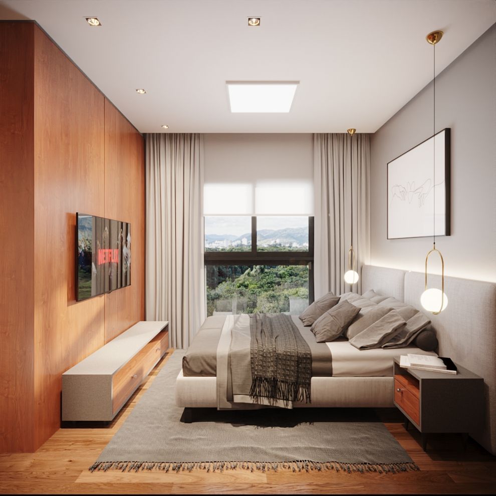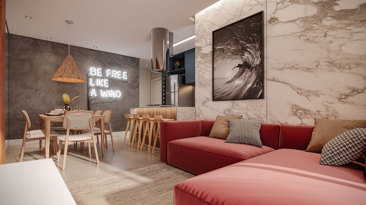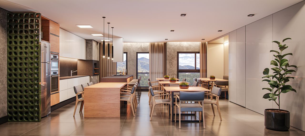 O design foi concebido por um escritório de arquitetura de renome, priorizando a funcionalidade, com acabamentos modernos como porcelanato e infraestrutura para ar condicionado.