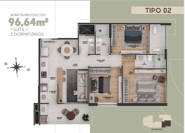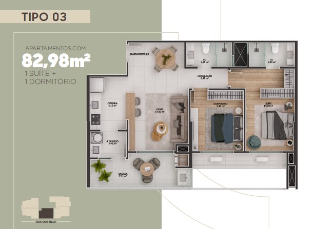O Ravello traz a essência da vida contemporânea para Itajaí com 75 apartamentos e 2 salas comerciais. O projeto apresenta unidades de 78 m² a 106 m², com plantas que privilegiam conforto, ventilação cruzada e integração entre os ambientes. Os apartamentos possuem até 3 dormitórios, sendo até 1 suíte e 2 demi-suítes, com 2 vagas de garagem. O empreendimento foi pensado para quem busca qualidade de vida, sustentabilidade e conveniência em um dos bairros mais valorizados da cidade.