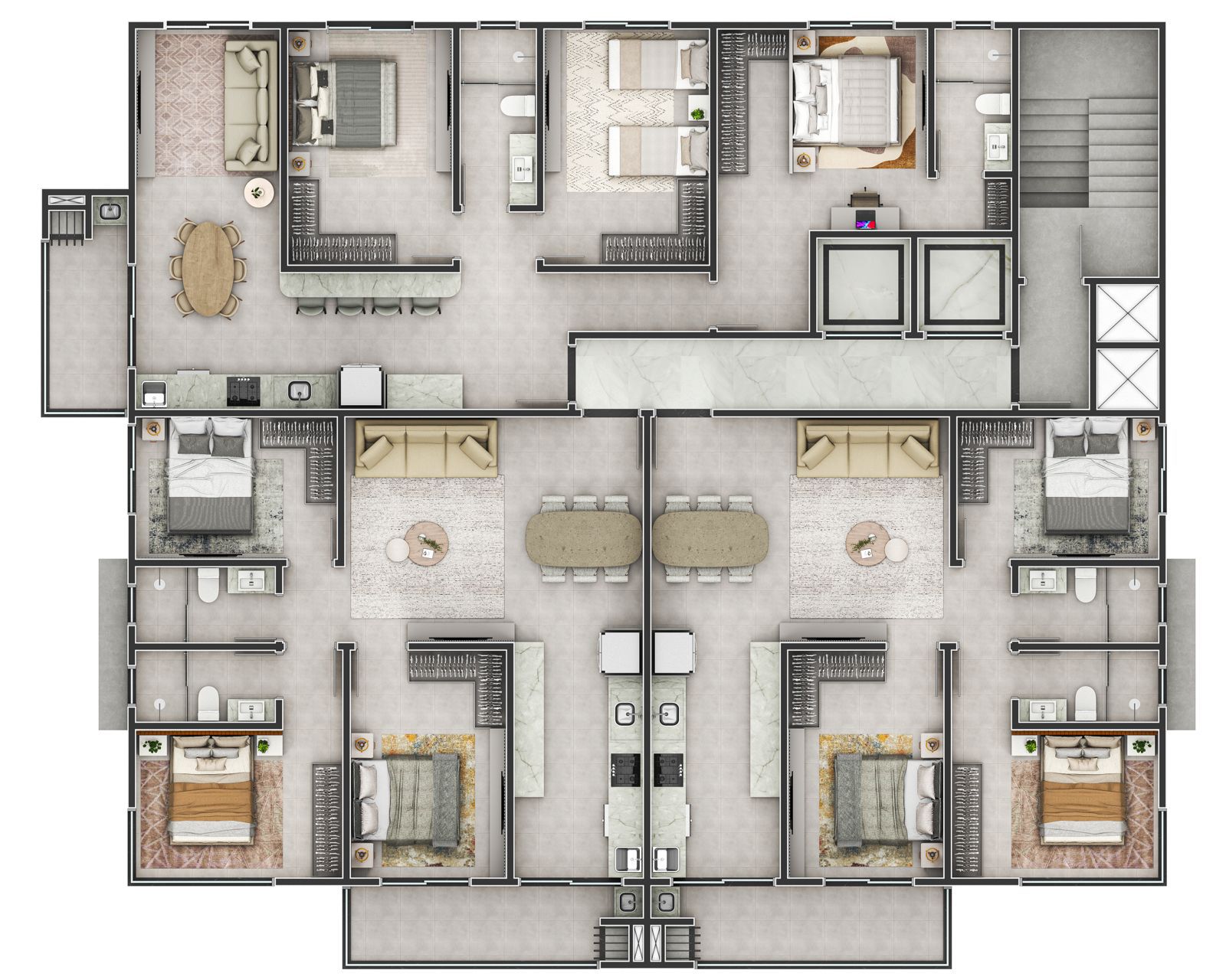 O projeto apresenta arquitetura moderna, acabamentos de alto padrão e áreas de lazer completas, refletindo a harmonia entre conforto e natureza.