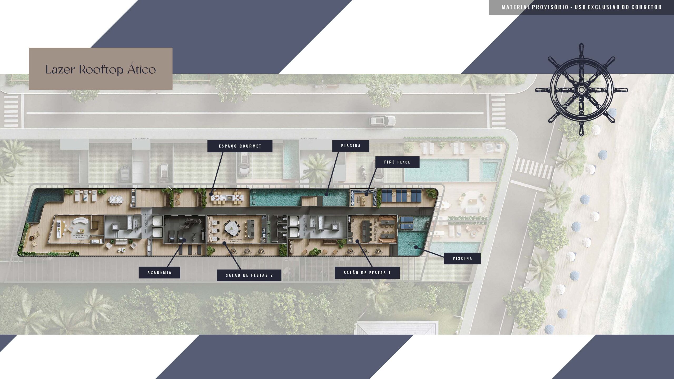 O condomínio reúne lazer completo, segurança e comodidades de alto padrão, com ambientes entregues decorados e soluções de eficiência energética. A infraestrutura abrange piscinas (inclusive térmica e com hidromassagem), academia e espaços sociais que atendem rotinas residenciais e veraneio.