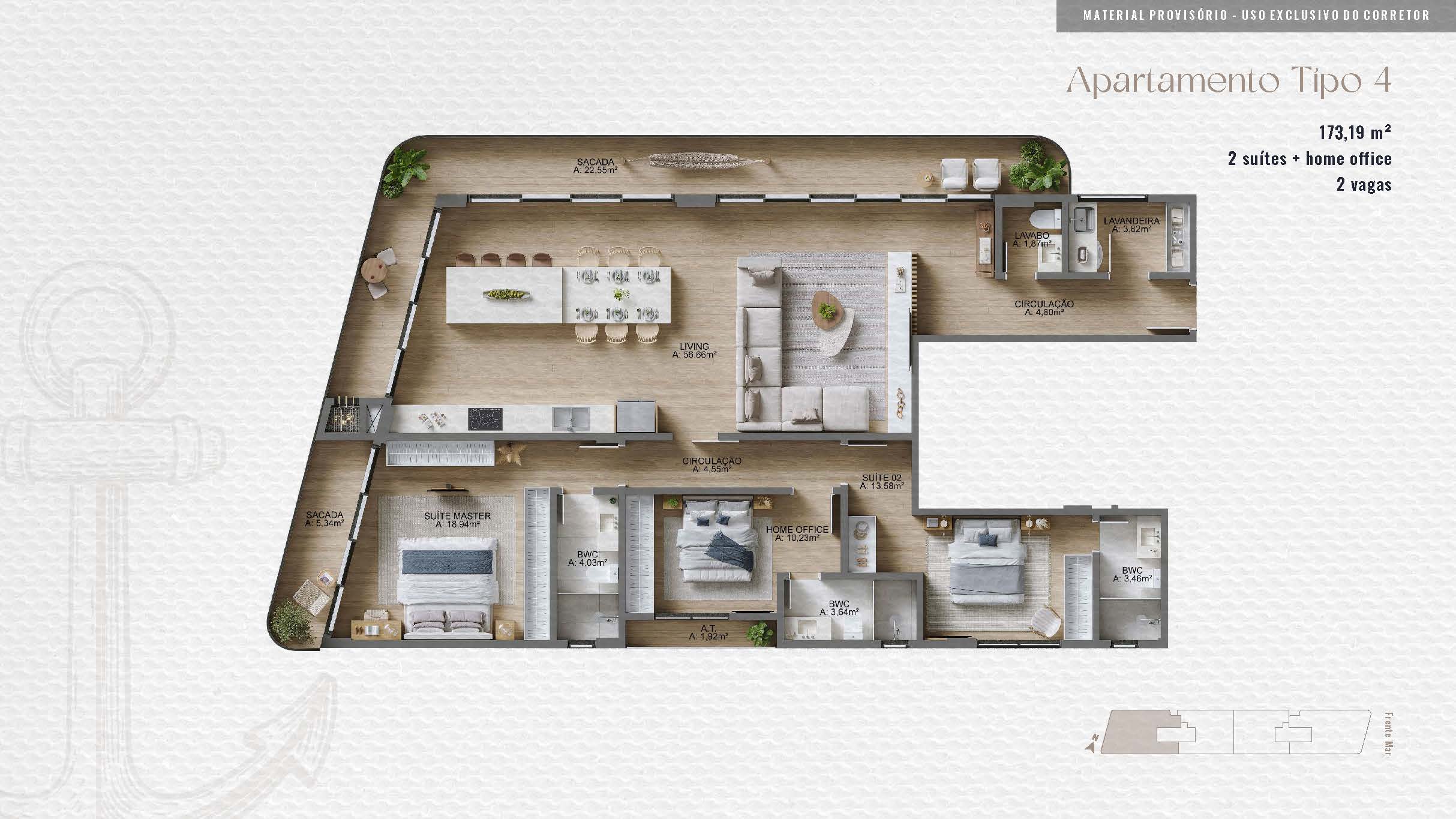 A ABF & VACCARO Luxury Realty assina o Sailor’s Bay com foco em alto padrão em Santa Catarina, unindo personalização, especificações técnicas completas e prazos organizados. A atuação privilegia a experiência do morador, eficiência energética e acabamentos consistentes em todos os ambientes.